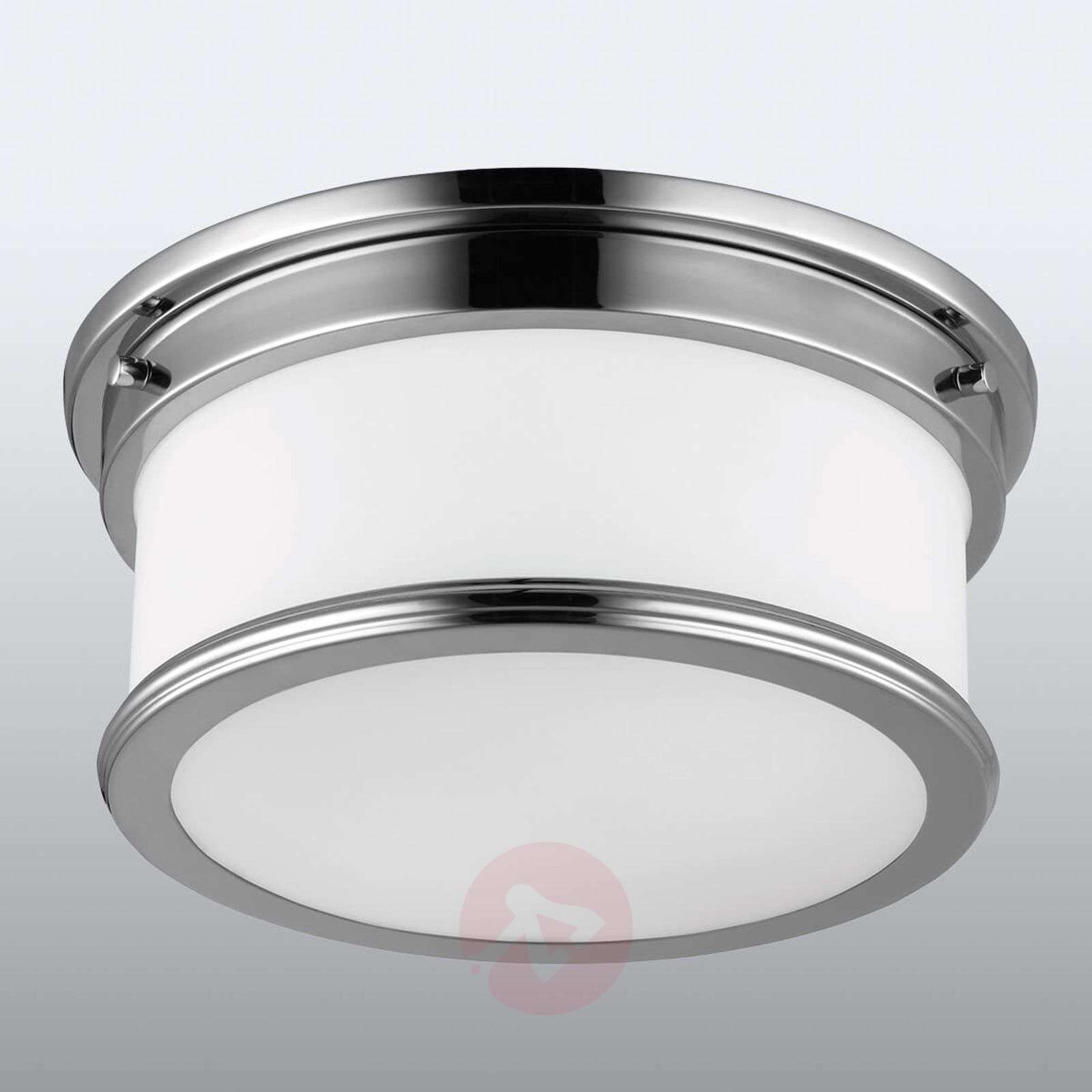 Nowoczesna lampa sufitowa Payne, nieco klasyczna Design lampy sufitowej Payne o stopniu ochrony IP44 do łazienek i innych pomieszczeń o podwyższonej wilgotności odzwierciedla styl z epoki Tudorów, ale w nowoczesnej odsłonie. Uchwyt sufitowy i końcówka klosza wykonane są z metalu o wykończeniu chromowanym i polerowanym na wysoki połysk. Okrągły, biały klosz stworzono z wytrawionego szkła opalowego. Payne pasuje do wielu wariantów wyposażenia i zapewnia doskonałe oświetlenie ogólne w całym pomieszczeniu. Klasa efektywności energetycznej: A++