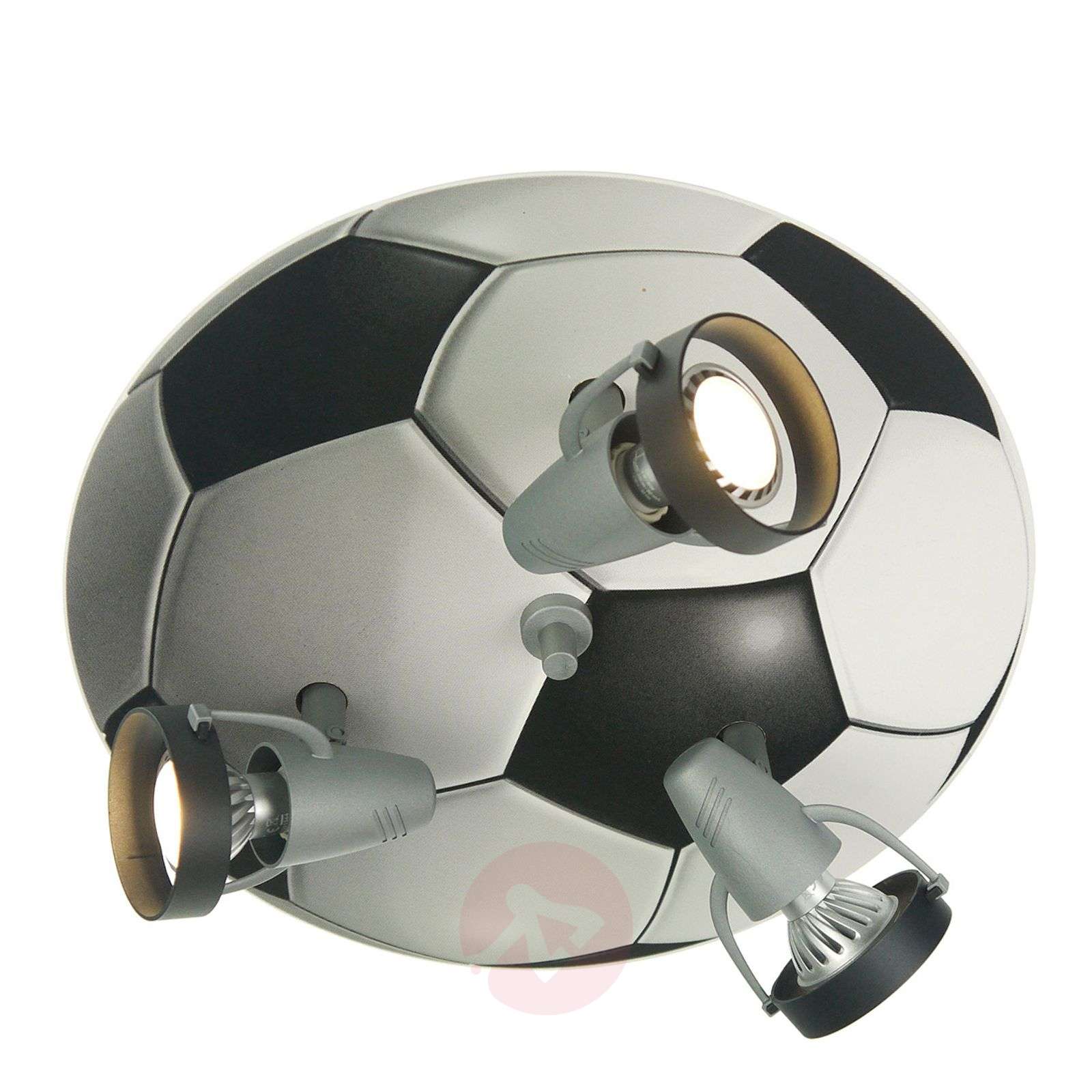 Spot sufitowy Piłka nożna z trzema spotami Zadziwiająco autentycznie wygląda półokrągła , dwuwymiarowa lampa sufitowa w kształcie skórzanej piłki nożnej. Posiada trzy odchylane i obracane spoty, które umożliwiają oświetlenie różnych stref pomieszczenia. Spot sufitowy, który ucieszy nie tylko młodszych, ale i starszych miłośników piłki nożnej. Klasa efektywności energetycznej: A++