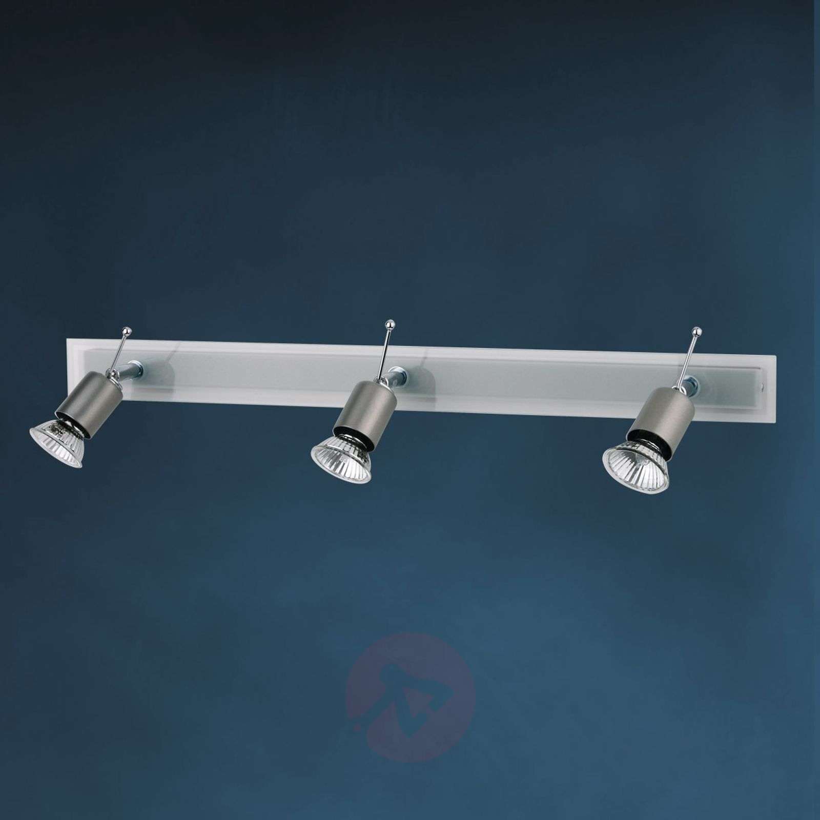 Lampa sufitowa SARA ze szklaną osłoną Lampa sufitowa SARA zachwyca piękną osłoną wykonaną z częściowo satynowanego szkła, uzupełnioną dwoma wychylnymi reflektorami z niklowaną powierzchnią. Klosz zapewnia bardzo skuteczne oświetlenie, podkreślając przy tym atrakcyjne wzornictwo lampy. Idealna lampa sufitowa do wnętrz o nowoczesnym stylu wyposażenia. Klasa efektywności energetycznej: A++
