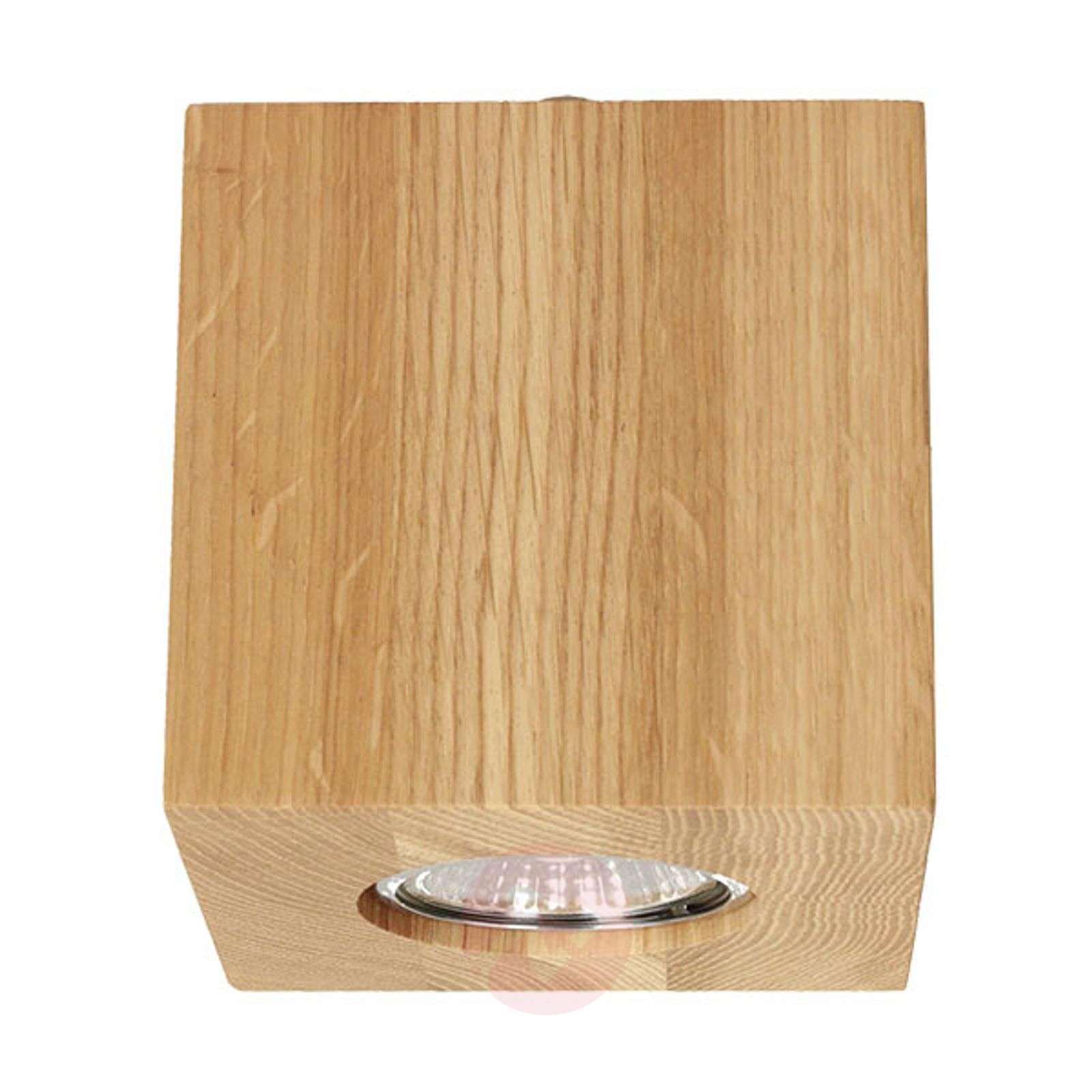 Wooddream - lampa sufitowa LED w nowoczesnej formie Wykonana z naturalnego drewna lampa sufitowa LED Wooddream ma nowoczesny kwadratowy korpus z olejowanego dębu, w którym mieści się wymienne źródło LED. Roztacza ono jasny blask o barwie ciepłej bieli. Ta mała lampa idealnie nada się do indywidualnego doświetlenia wybranych obszarów w mieszkaniu. Obojętnie, czy w kuchni, w przedpokoju, salonie, jadalni czy też sypialni. Czy to samodzielnie, czy też z kilkoma innymi – naturalna lampa sufitowa LED Wodddream będzie dobrze pasować do wielu różnych aranżacji wnętrz. Klasa efektywności energetycznej: A+
