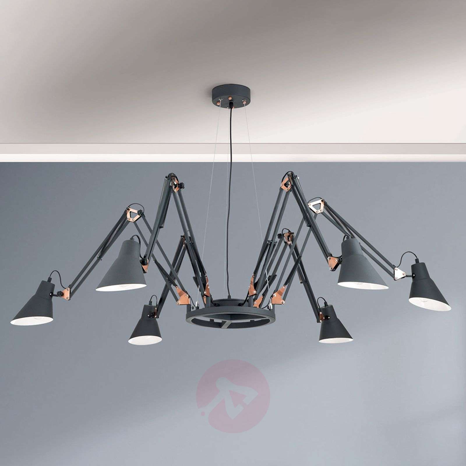 Modna lampa wisząca Bachelor z sześcioma regulowanymi lampami z naciągami sprężynowymi Ta lampa wisząca prezentuje się bardzo nietypowo, co wpływa na wygląd ogólny całego pomieszczenia, nawet gdy światło nie jest włączone. Bachelor składa się z sześciu lamp z naciągiem sprężynowym na osobnych ramionach. Po trzy lampy wystają w prawo i w lewo. Ramiona mogą być regulowane w trzech punktach, dzięki czemu kierunek padania światła może być bardzo różny. Lampa wisząca Bachelor zapewnia oświetlenie ogólne, przy którym żaden zakątek pomieszczenia nie będzie ciemny. Klasa efektywności energetycznej: A++