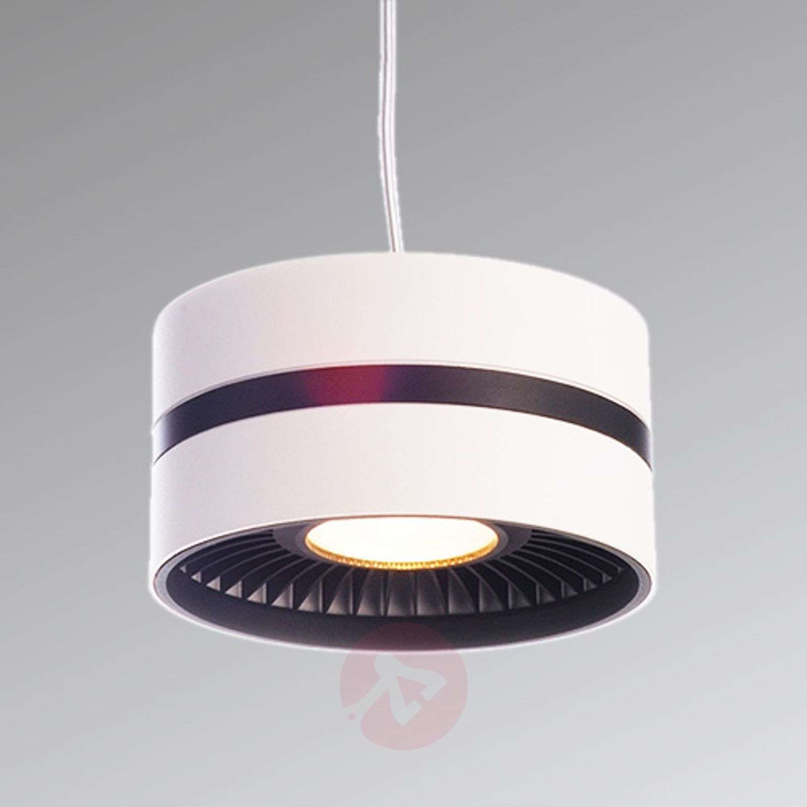 Lampa wisząca Black & White III wykonana z ciśnieniowego odlewu aluminium z diodami LED Dzięki futurystycznemu designowi lampa wisząca LED Black & White III pasuje do nowoczesnych wnętrz mieszkalnych. Klosz lampy ma dwa kolory – biały i czarny Energooszczędna żarówka LED z technologią chip on board została zamontowane na stałe w lampie i w związku z tym wchodzi w zakres dostawy. Lampa wisząca Black & White III emituje ciepłobiałe światło o temperaturze barwowej 3 000 kelwinów i zapewnia przytulną atmosferę. - kąt padania światła 40° Klasa efektywności energetycznej: A+