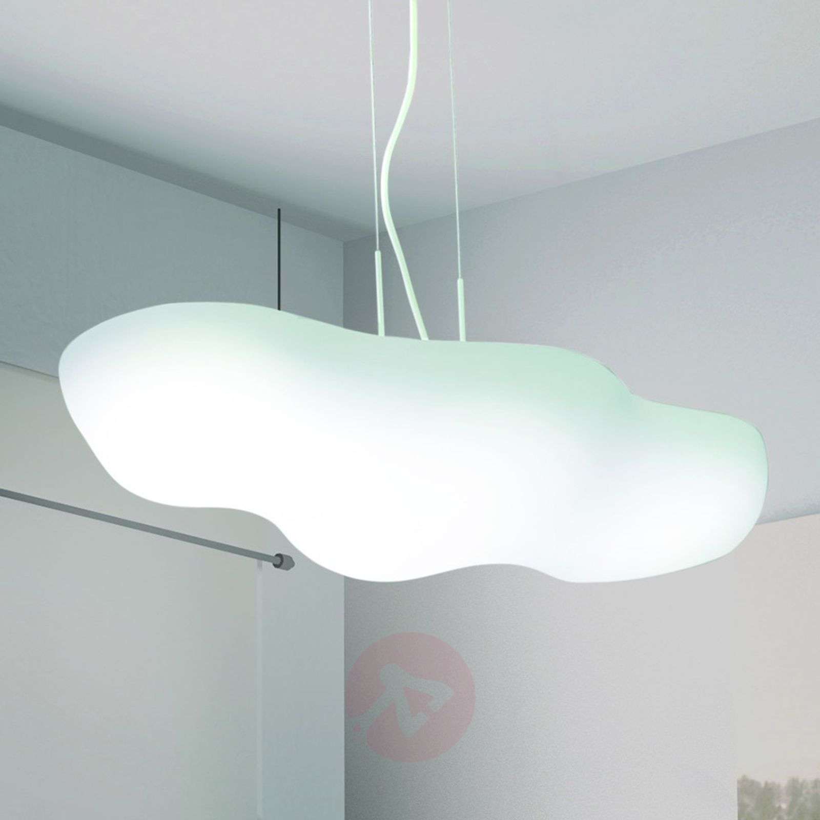 Biała lampa wisząca Eos w kształcie chmury inspiruje do marzeń Lampa wisząca EOS posiada przesłonę wykonaną z białego tworzywa sztucznego i wygląda jak letnia chmura na niebie. W ten sposób światło jest równomiernie rozpraszane do pomieszczenia. Fascynująca lampa wisząca inspiruje do marzeń i doskonale nadaje się do sypialni. Żarówki nie są objęte dostawą. Klasa efektywności energetycznej: A++