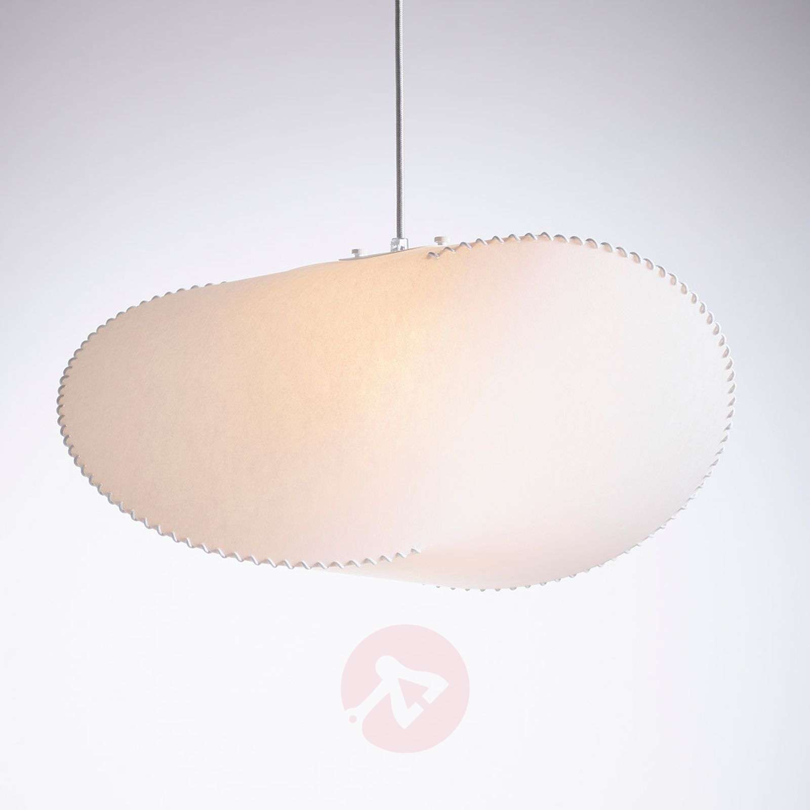 Lampa wisząca Floyd - gra geometrii i perspektywy Materiał wykonany z wielu warstw papieru przetworzonego na Lunopal lekko przepuszcza światło i sprawia, że Floyd staje się równomiernie świecącym korpusem. W zależności od kąta obserwacji, Floyd wydaje się przybierać inny kształt. Geometryczny korpus oloidu został po raz pierwszy zdefiniowany przez Paula Schatza w 1929 roku, a ostatecznie ucieleśniony przez Feliksa Hedigera w postaci lampy wiszącej Floyd. Kształt opiera się na dwóch przecinających się okręgach; proste połączenia między krawędziami okręgu wytwarzają powierzchnie prostokreślne, które tworzą powierzchnię oloidu. W przypadku Floyd kręgi są wykonane ze sznurków, a rozciągnięte między nimi Lunopal tworzy powierzchnie prostokreślne. Klasa efektywności energetycznej: A++