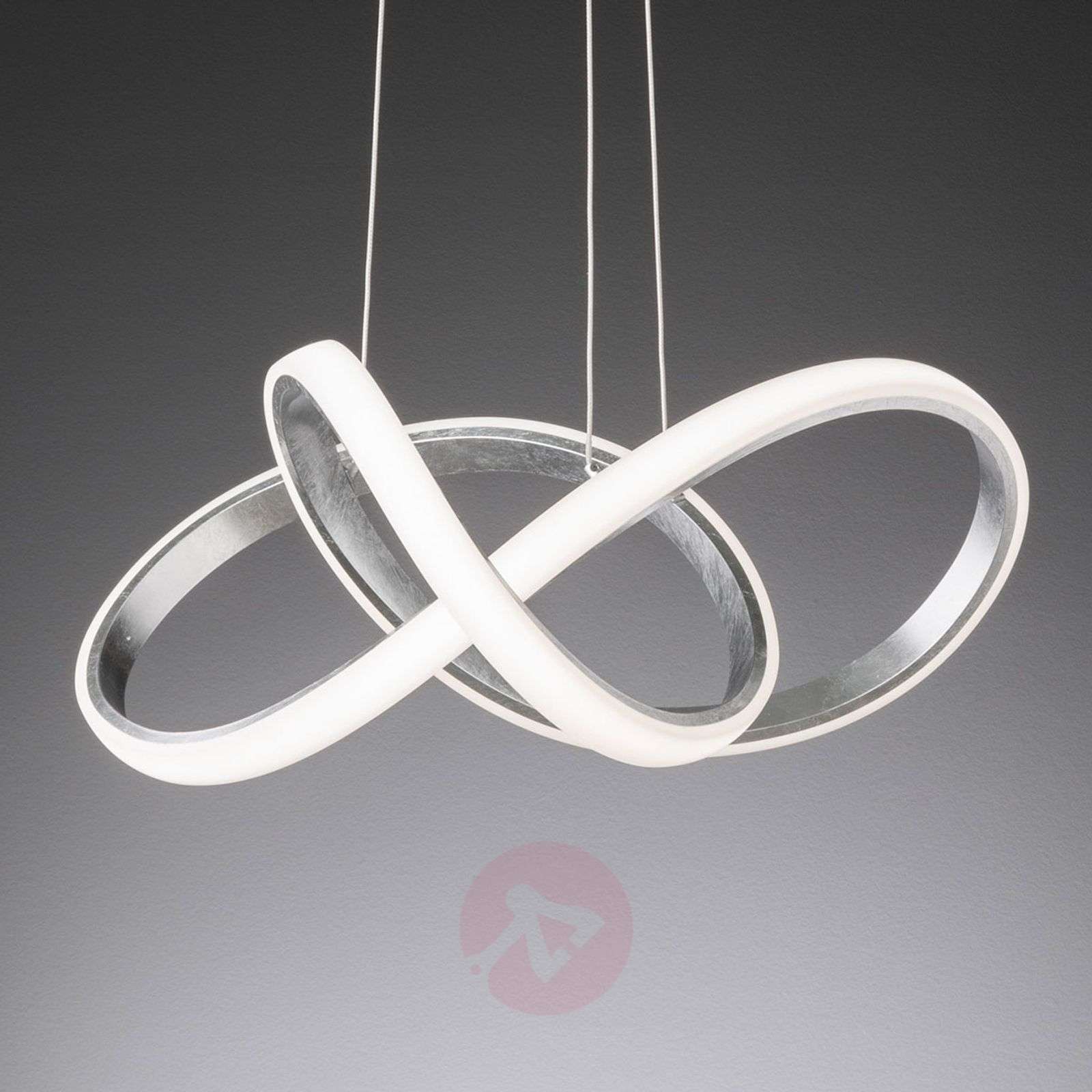 Organiczny design, szlachetna stylistyka srebra płatkowego i czyste formy: lampa wisząca LED Indygo Lampa wisząca LED Indygo to nowoczesny i elegancki element oświetleniowy w pomieszczeniu. Wygięta, płaska forma korpusu zapewnia indywidualny wygląd lampy. Mocowanie sufitowe i tylna strona świecącego elementu są utrzymane w stylistyce srebra płatkowego, co nadaje lampie bardzo ekskluzywny charakter. Do produkcji lampy wykorzystano aluminium, metal i silikon. Lampę wiszącą Indygo można płynnie ściemniać za pomocą odpowiedniego przełącznika ściennego, dopasowując oświetlenie do indywidualnych życzeń i warunków panujących w pomieszczeniu. Klasa efektywności energetycznej: A+