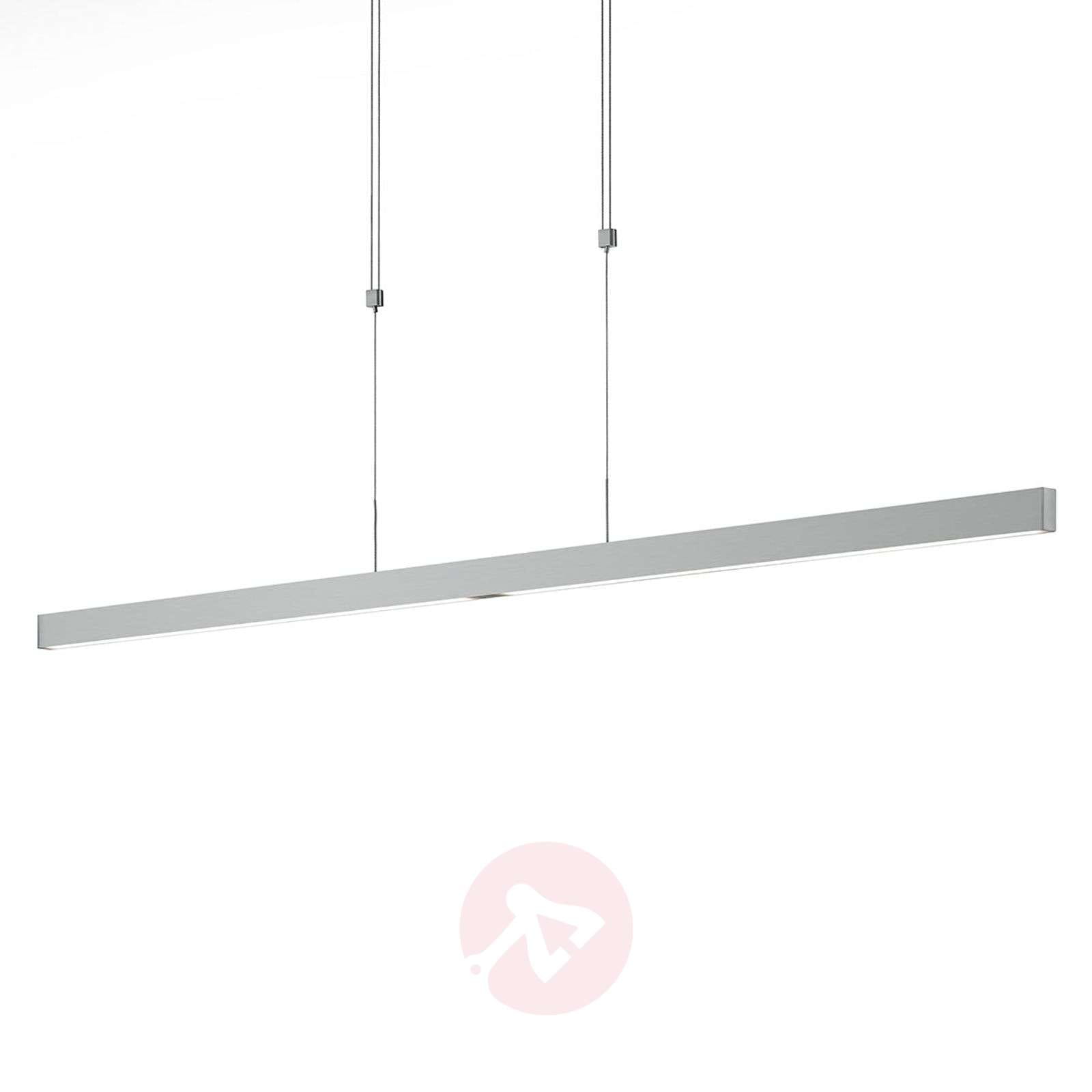 Lampa wisząca LED Pia z regulacją wysokości i inteligentnym sterowaniem Przeciwieństwo stałej lampy wiszącej o tej samej jasności: Lampa wisząca LED Pia dostosowuje się na kilka sposobów do wymagań stawianych elementom oświetleniowym, stając się w ten sposób nowoczesnym rozwiązaniem, umożliwiającym dowolnie ustawione, przyjazne oświetlenie pomieszczeń. Posiada dwa czujniki sterowane gestami. Ruchy rąk, wykonywane tak jak przy wycieraniu, powodują załączanie i wyłączanie światła emitowanego w górę i w dół, podczas gdy trzymanie ręki nieruchomo rozpoczyna proces ściemniania, tak aby można było ustawić pożądaną jasność. Ściemnianie odbywa się w sposób płynny, a funkcja pamięci zapisuje ostatni wybrany poziom jasności, by ustawić go przy następnym załączeniu lampy. Dzięki matowemu niklowaniu i regulowanej wysokości ta lampa wisząca LED Pia łatwo wkomponowuje się w stylową, nowoczesną koncepcję aranżacji wnętrz i podkreśla ich charakter. Klasa efektywności energetycznej: A