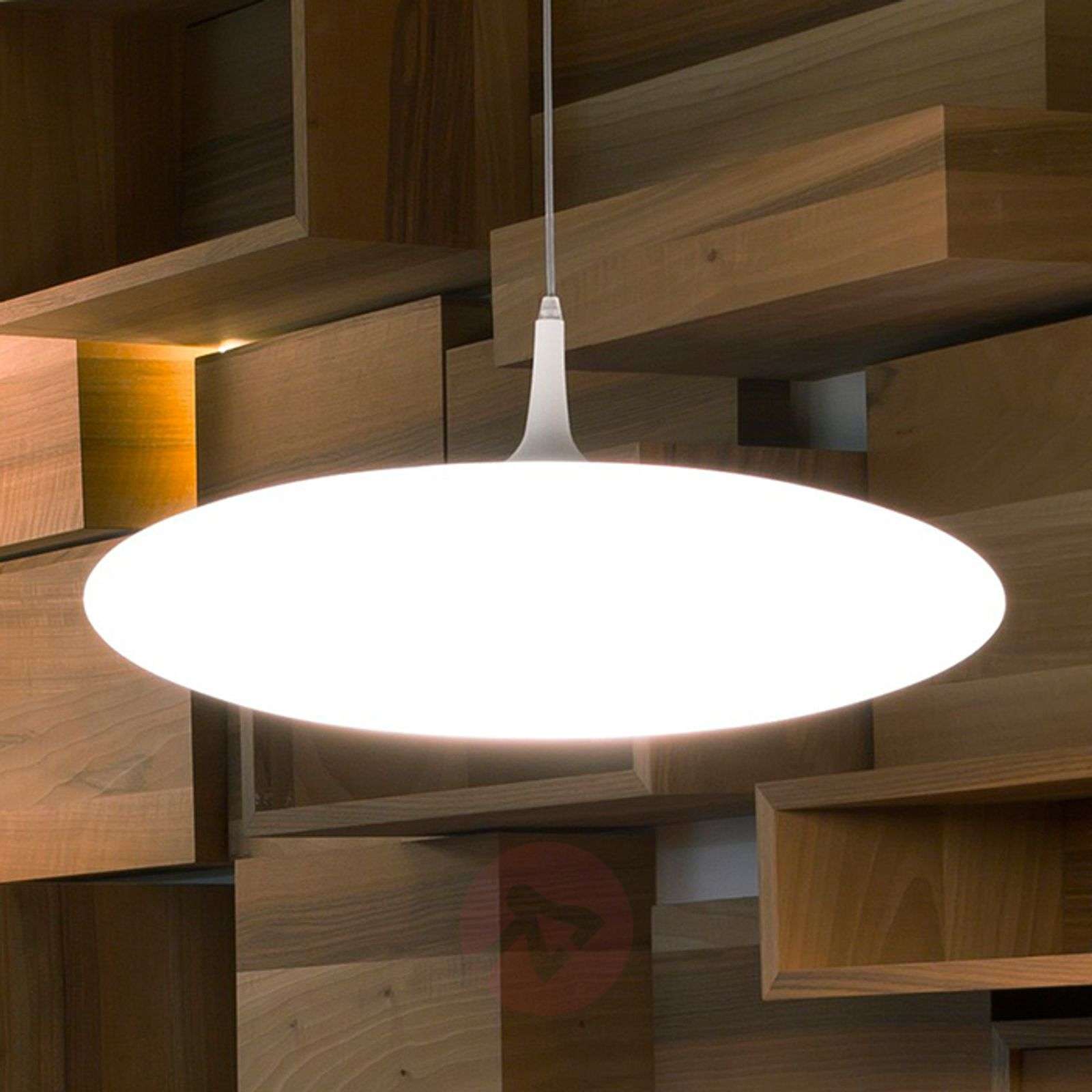 Okrągła lampa wisząca LED Squash z białego polietylenu Pięknie wyprofilowana lampa wisząca LED Squash w nowoczesnym wzornictwie jest modnym i przyjemnie prostym oświetleniem o wielu zaletach. Atutem jest niewątpliwie polietylen, będący bardzo wytrzymałym materiałem, oraz zastosowanie technologii LED o wysokim potencjale energooszczędności. Przy mocy 19 W wytwarzany jest strumień światła 1949 lumen, inaczej mówiąc 100 lumenów z jednego wata! Squash prezentuje się doskonale nie tylko nad stołem w jadalni – ta doskonała prezencja jest widoczna również w innych pomieszczeniach, oświetlanych przyjemnym ciepłym białym światłem. Klasa efektywności energetycznej: A+