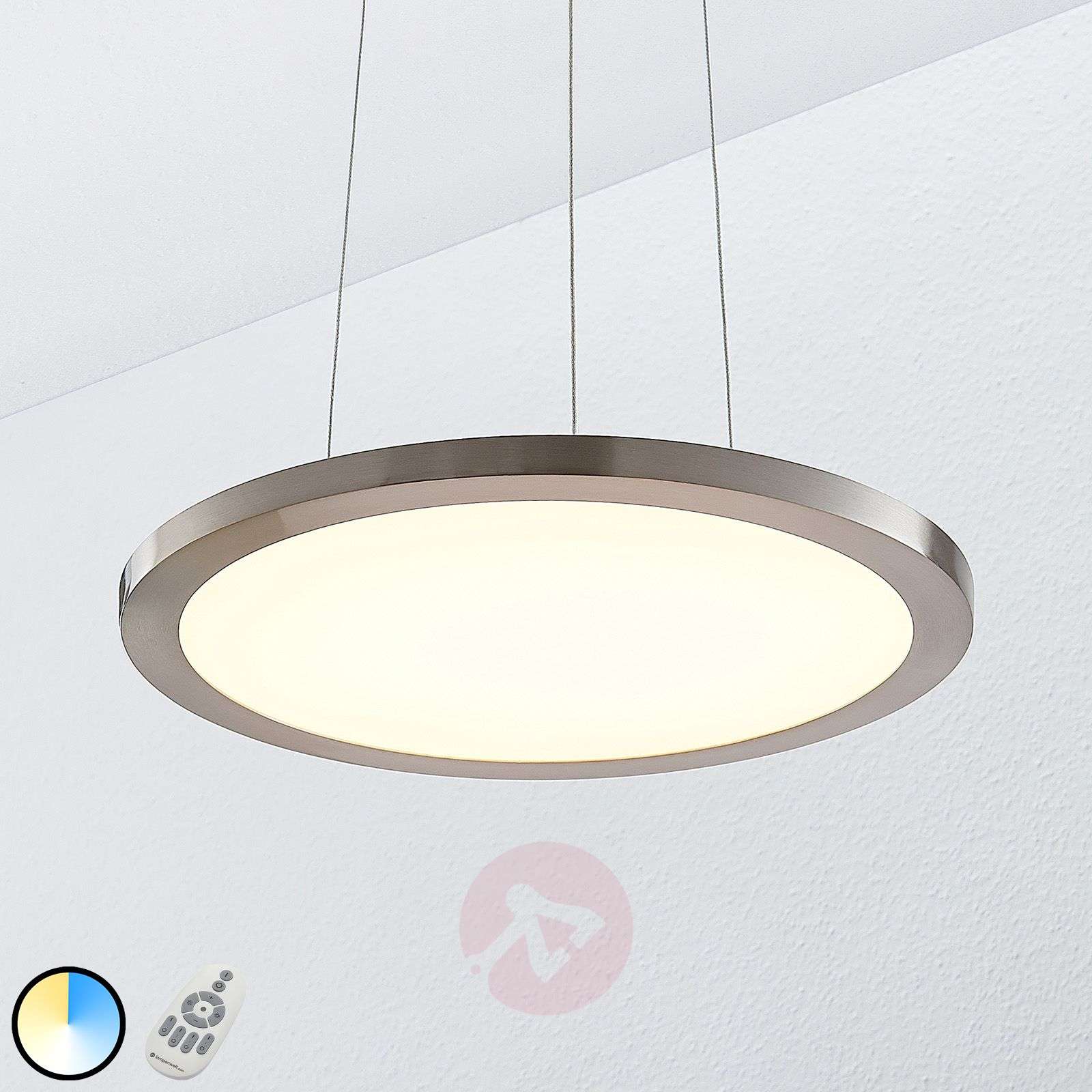 Ściemniana lampa wisząca LED Tess satynowany chrom z regulowaną barwą światła (CCT) i pilotem Tess oferuje kilka bardzo przydatnych funkcji jako lampa wisząca LED i jest to lampa, która może być stosowana zarówno w jadalni, jak i w gabinecie. Diody LED mogą świecić w różnej barwie światła, od ciepłej bieli przez uniwersalną biel do temperatury barwowej białego światła dziennego. Te dwie ostatnie barwy doskonale nadają się do pracy i długotrwałej koncentracji, podczas gdy światło o barwie ciepłej bieli jest szczególnie popularne w domowych warunkach oświetleniowych o przytulnej atmosferze. Funkcja zmiany barwy może być sterowana za pomocą dołączonego pilota, a jasność może być również regulowana. Dla większej wygody zintegrowano funkcję pamięci, dzięki czemu wybrane ustawienia są zachowywane nawet po ponownym uruchomieniu urządzenia. Dzięki wysokiej jasności podstawowej, powierzchnia stołu może być dobrze oświetlona przy użyciu technologii LED, nawet przy stosunkowo niskim zużyciu energii. Okrągły kształt promieniuje czymś ponadczasowym, ale wraz z satynowo-chromową powierzchnią wydaje się być bardzo nowoczesny. Funkcje/szczegóły techniczne: - możliwość regulowania barwy światła - możliwość ściemniania - z pilotem - z funkcją pamięci (również przy wyłączaniu za pomocą przełącznika ściennego) Klasa efektywności energetycznej: A+