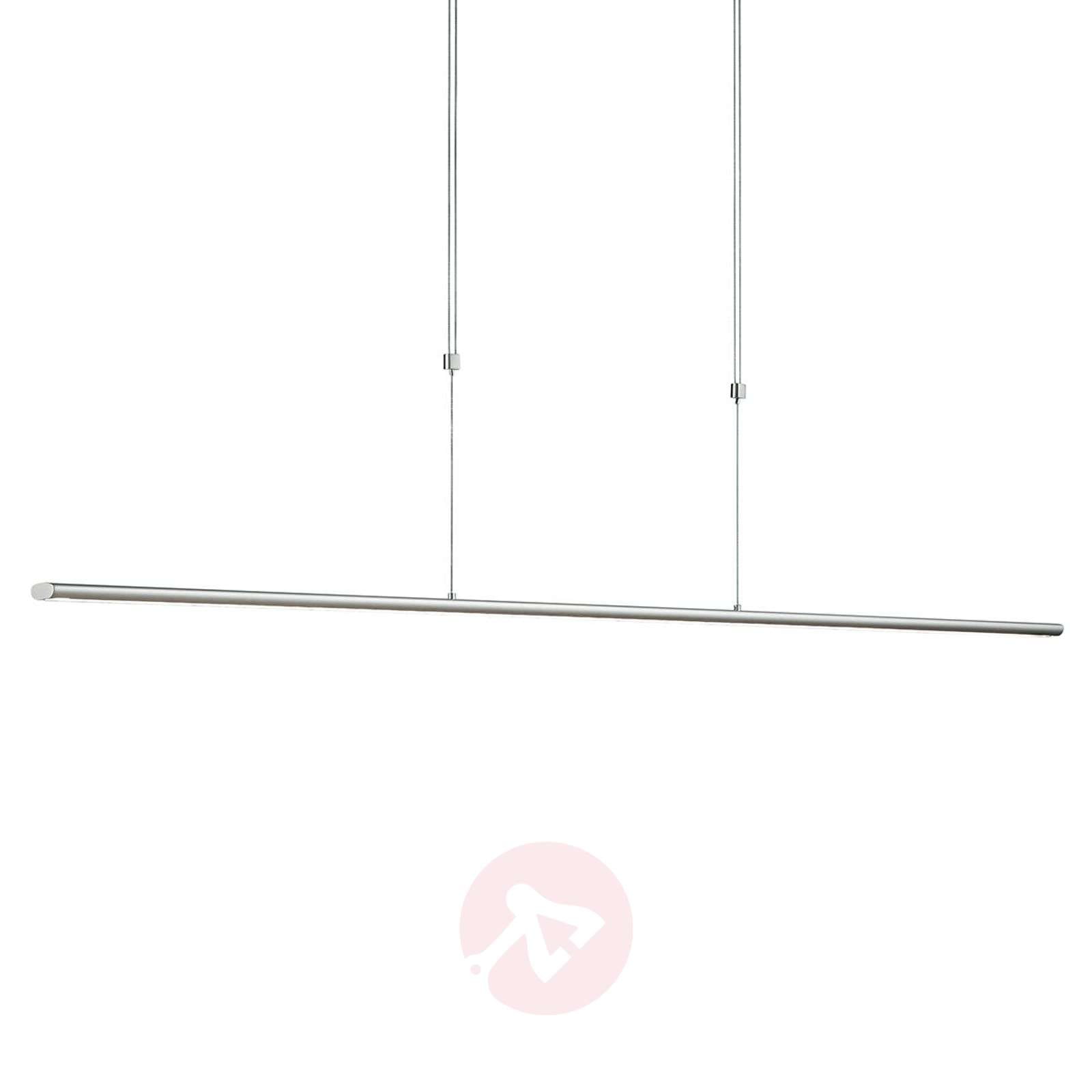 Energooszczędna, sterowana gestami lampa wisząca LED w formie belki Elisa Lampa wisząca Elisa jest prawdziwym hitem nie tylko z racji swego wyglądu, ale także ze względu na technologię w niej użytą. Praktyczne sterowanie z użyciem gestów sprawia, że ta lampa wisząca może być włączana i wyłączana kilkoma ruchami ręki. Można ją także bardzo precyzyjnie przyciemnić, sprawiając, że uzyskamy jeszcze milsze i jeszcze bardziej przytulne światło. Czujnik ściemniacza jest wbudowany w lampę i nie trzeba go kupować oddzielnie. Z racji matowego niklowania i prostoliniowych kształtów lampa wisząca Elisa wygląda także bardzo nowocześnie, a zarazem ponadczasowo i klasycznie. Wynika to z faktu, że ta lampa wisząca jest tożsama ze swego rodzaju umiejętnym niedopowiedzeniem i dlatego bez wysiłku można ją wkomponować w określony styl aranżacji pomieszczenia. Ta lampa swym, wyglądem wzbogaci zarówno stół w jadalni, jak i ten w salonie czy też długi stół konferencyjny. Nad tym ostatnim wygląda szczególnie dobrze, gdyż ma podłużny, smukły kształt belki. Klasa efektywności energetycznej: A
