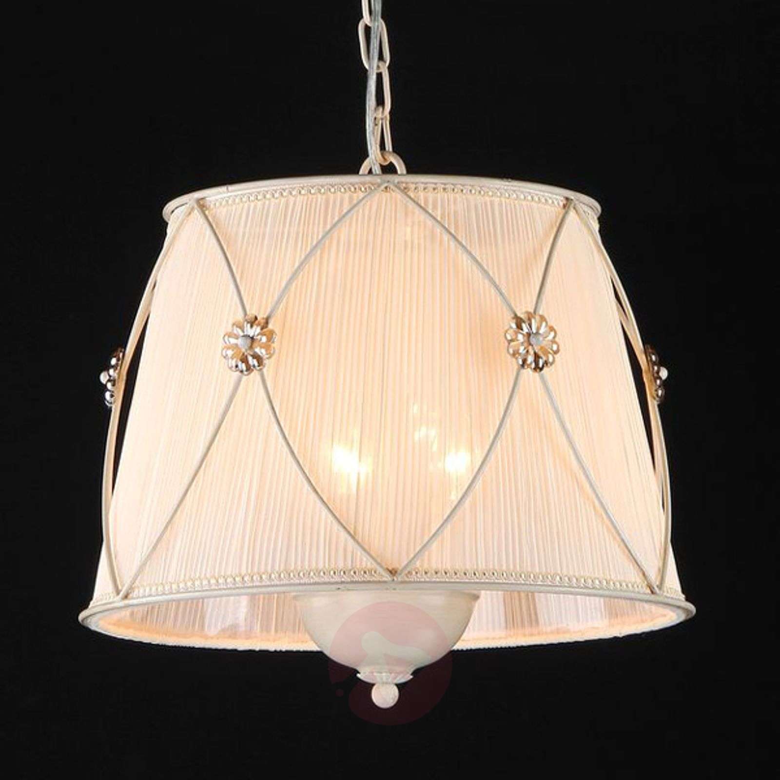 Lea - wymyślna lampa wisząca z kryształowymi kwiatami Lea zachwyca przede wszystkim oryginalnym charakterem. Na pierwszy rzut oka nie widać w ogóle właściwego szklanego klosza lampy, ponieważ ukryto go za delikatnie plisowaną organzą najwyższej jakości. Materiał ten w połączeniu z mlecznym szkłem klosza zapewnia równomierne rozłożenie światła, tworzące w mieszkaniu wyjątkowo przytulny klimat. Najciekawszym szczegółem są kryształowe kwiatki rozmieszczone dookoła klosza na cienkich metalowych pręcikach. Uszlachetniają one wygląd lampy, tworząc zarazem migotliwe rozbłyski po włączeniu żarówki. W ogólnym ujęciu Lea to lampa wisząca stosowana jako przepiękne podstawowe źródło światła, a zarazem nadająca wnętrzom urokliwy klimat. Klasa efektywności energetycznej: A++