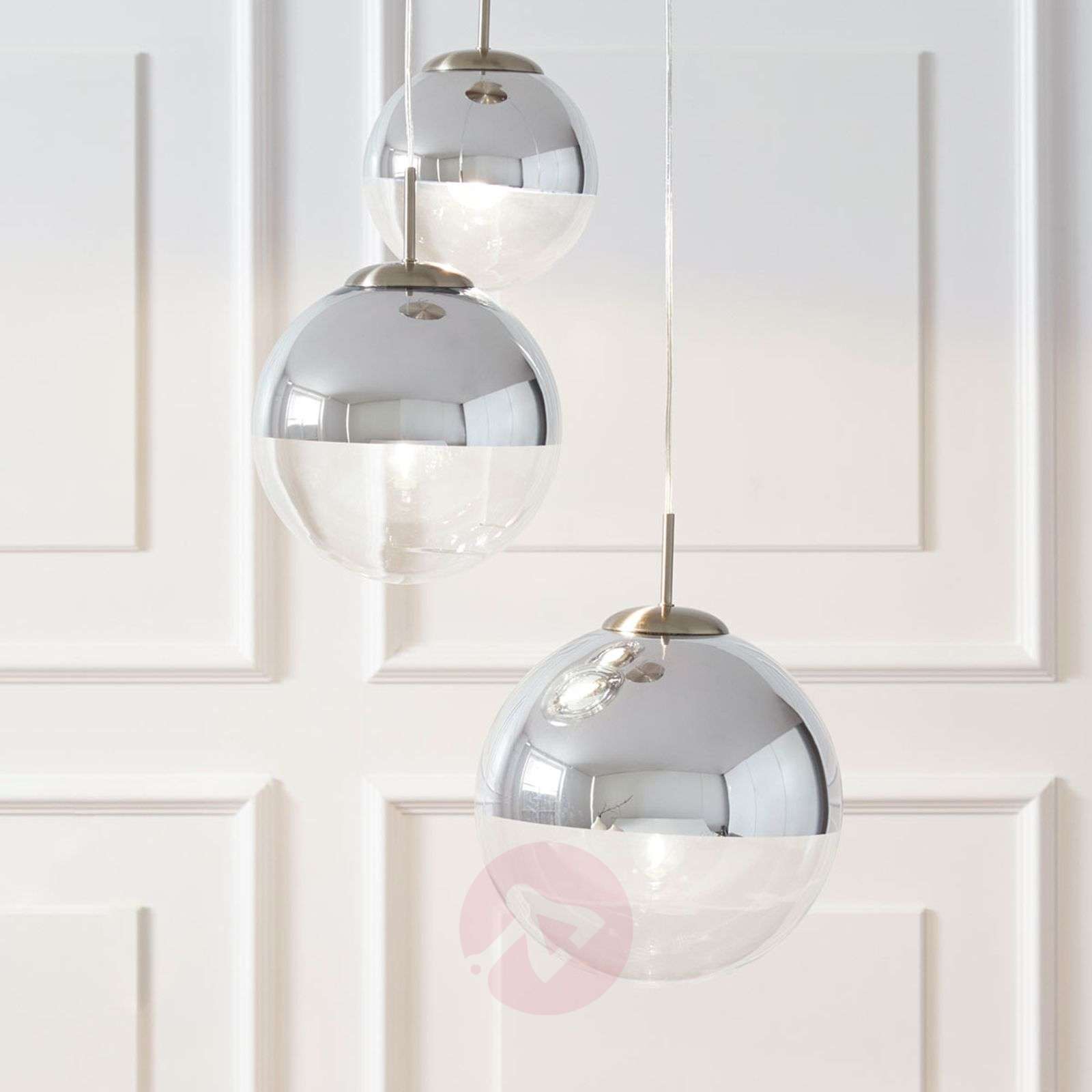 3-punktowa lampa wisząca Ravena o chromowanej powierzchni Ravena składa się z trzech szklanych kul o różnej wielkości i stanowi lampę wiszącą, która idealnie sprawdzi się po zamontowaniu nad stołem, gdzie będzie wyglądać bardzo stylowo i elegancko. Efekt taki zawdzięcza ona nie tylko designowi, w którym obecne jest chromowanie. Kluczowa staje się tu przede wszystkim obecność kul. Jako źródła światła szczególnie poleca się tu żarówki filamentowe o wyglądzie prawdziwej żarówki żarnikowej. Doskonale uzupełniają one wygląd całości. Klasa efektywności energetycznej: A++