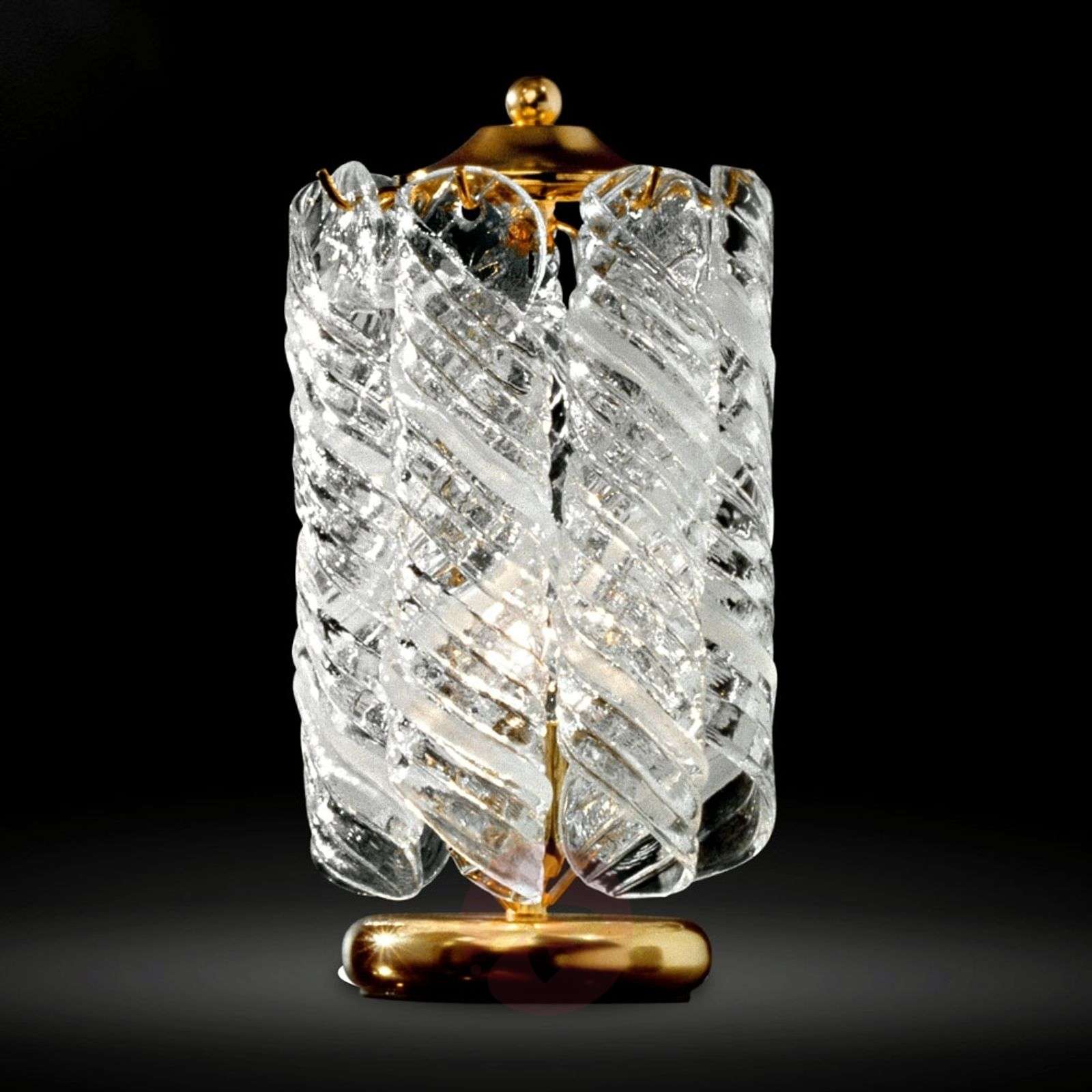 Klasyczna lampa na stolik nocny Molle z konstrukcją z 24-karatowym złoceniem Molle jest pięknym źródłem światła do mieszkań i domów urządzonych w klasycznym stylu. Szklane elementy są w pewnym sensie zwinięte i posiadają wyjątkową strukturę rowkową, dodatkowo przezroczyste sekwencje przechodzą w białe tak, iż powstaje piękna gra światła zapewniającą miłą i zachęcającą atmosferę. Metalowa konstrukcja lampy na stolik nocny posiada 24-karatowe złocenie - aura wdzięku i elegancji! Molle nadaje się.wyśmienicie do zastosowania na stolik nocny. Klasa efektywności energetycznej: A++
