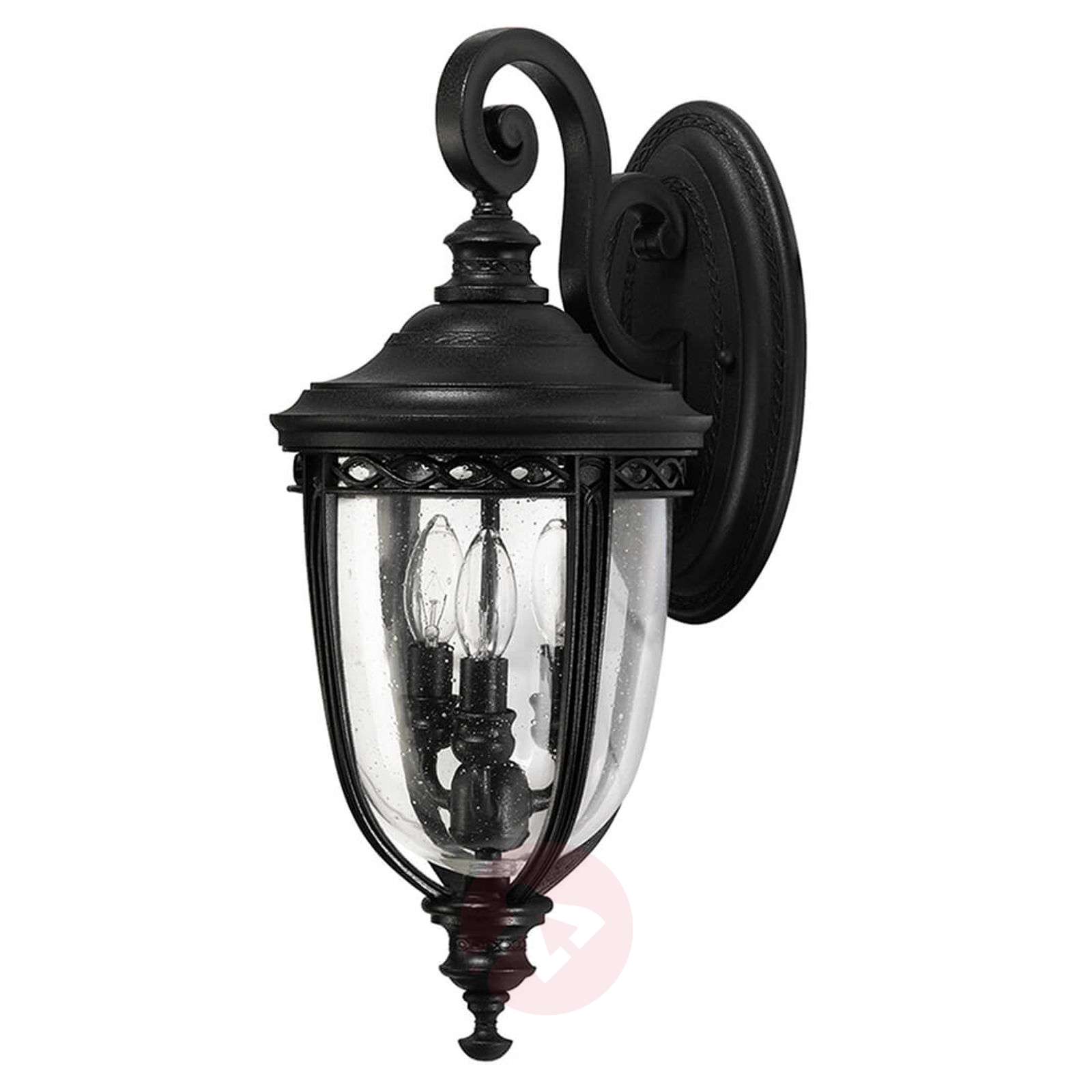 Latarnia zewnętrzna English Bridle – oświetlenie podwórka, pełne wiejskiego uroku Lampa zewnętrzna English Bridle, zaprojektowana w stylu rustykalnej latarni, dzięki czarnemu lakierowaniu powierzchni i przezroczystemu szklanemu kloszowi może być stylowo połączona z wiejsko-rustykalnymi elementami wystroju podwórka. Lekko wzorzysty szklany klosz odsłania trzy zamontowane żarówki w kształcie świec, a światło przez nie emitowane może swobodnie wydostawać się dookoła i delikatnie rozświetlać otoczenie. Żarówka jest dostępna w dziale „Akcesoria dodatkowe”. Klasa efektywności energetycznej: A++