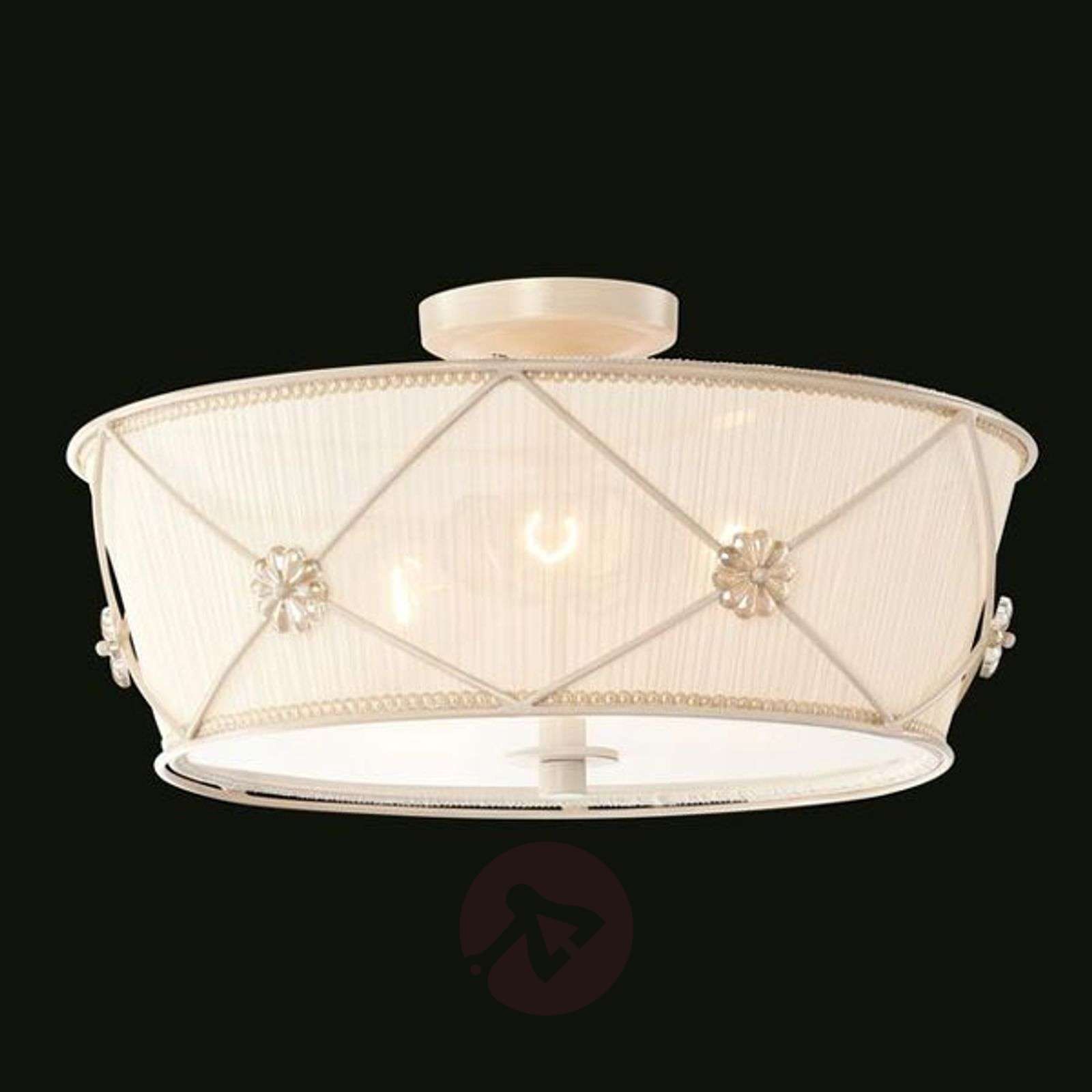 Klosz z organzy – lampa sufitowa Lea Lampa sufitowa Lea stanowi wyjątkowo ozdobne źródło światła. Szczególną uwagę poświęcono takiemu ukształtowaniu lampy, by roztaczała ona światło w równomierny sposób. Efekt ten jest zasługą nie tylko uroczej organzy spowijającej ramę abażuru, lecz również satynowanych elementów z tworzywa sztucznego ukrytych za tkaniną oraz chroniących spód lampy. Aby nadać tej dekoracyjnej lampie sufitowej jeszcze bardziej wyrazisty charakter, na wierzchniej stronie klosza umieszczono cienkie pręciki z metalu, na których skrzyżowaniach znajdują się kryształowe kwiatki. Nie tylko wyglądają one ładnie, ale pod wpływem załamywania w nich światła rzucają również szlachetne refleksy na otoczenie. Klasa efektywności energetycznej: A++