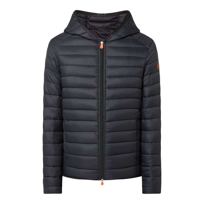 Lekka kurtka pikowana męska Save the Duck, Oddychający, wodoodporny materiał , Prosty krój , Kaptur, Zamek błyskawiczny dwustronny , Kieszenie zapinane na zamek błyskawiczny , Elastyczne brzegi rękawów i dołu , Watowanie , Z woreczkiem do przechowywania, PLUMTECH® , Długość tyłu w rozmiarze M: 67 cm, Szerokość ramion w rozmiarze M: 45 cm, Długość rękawa w rozmiarze M: 66 cm