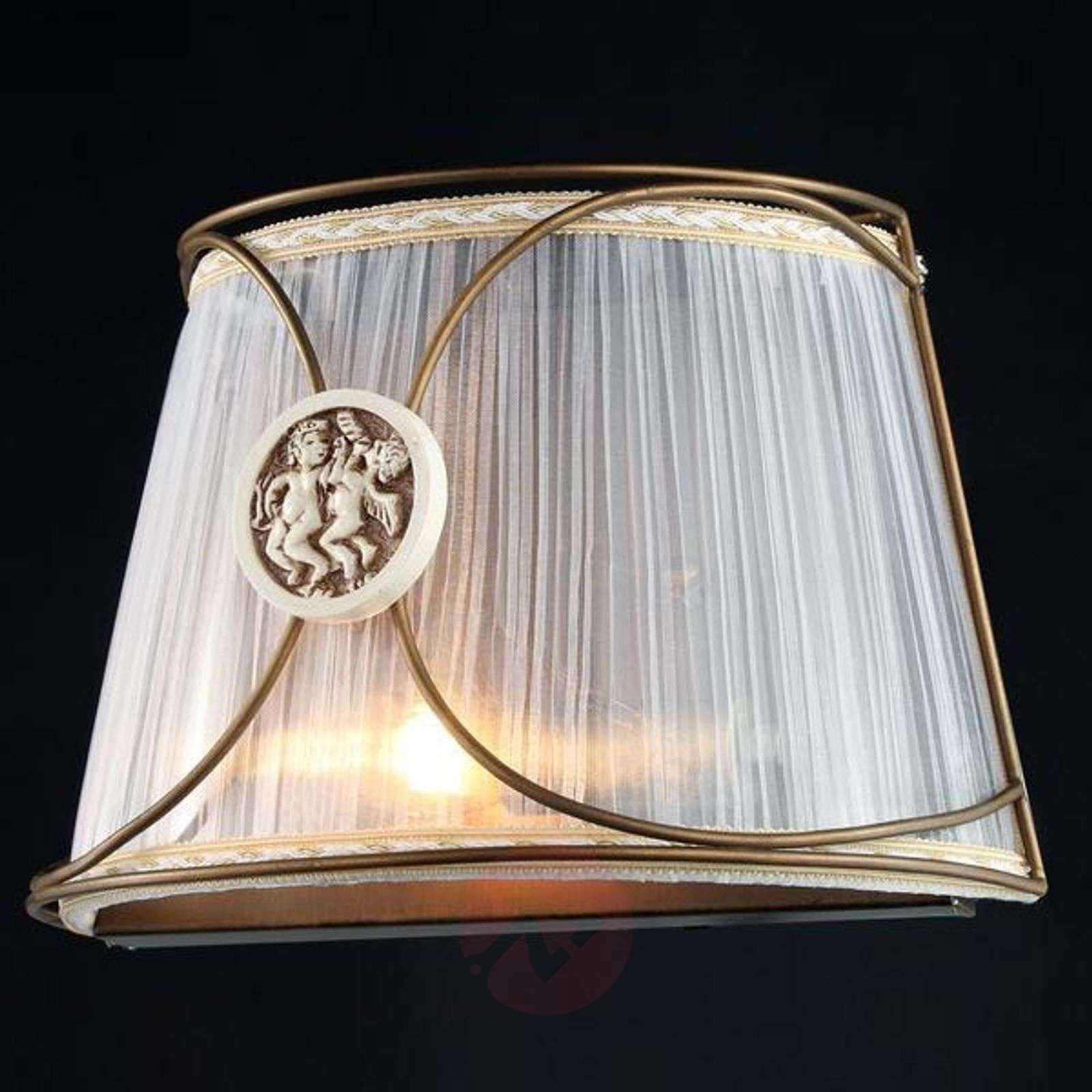 Anielskie motywy lampy ściennej Letizia Organza jest materiałem kojarzonym z wysokiej jakości produktami. A jako że lampa ścienna Leitizia odznacza się najwyższą jakością, materiał na klosz dobrano niezwykle starannie, decydując się na najdelikatniejszą, prześwitującą organzę. W połączeniu z ciepłym światłem tkanina ta zapewnia bowiem najciekawsze efekty oświetleniowe. Ręcznie uformowane metalowe pręciki stanowią obramowanie kloszu z organzy. To na nich zamocowano najciekawszy motyw tej lampy – okrągły dekoracyjny element z dwoma aniołkami. Wymyślne kształty Leitzii czynią z niej doskonała ozdobę każdego pomieszczenia zaaranżowanego w bogatym stylu klasycznym. Ta lampa ścienna to prawdziwa gratka dla każdego kolekcjonera figurek aniołów! Klasa efektywności energetycznej: A++