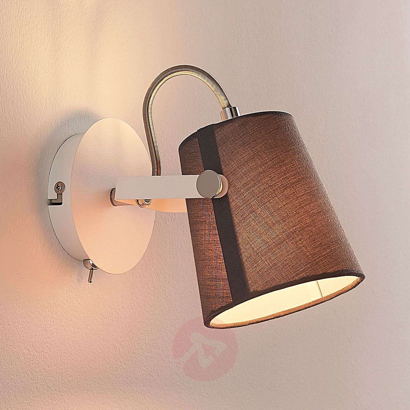 Szary, tekstylny reflektor Levi z oprawą E14 i obrotowym kloszem Ten reflektor z tkaniny idealnie się nadaje do zamontowania na ścianie. Światło jest ciepłe, eleganckie i przytulne, a sam rozszerzający się ku dołowi klosz można dowolnie obracać i odchylać, co pozwala na optymalne dopasowanie światła. W oprawie E14 można również montować żarówki LED, a odcień szarości, w jakim utrzymana jest ta lampa, odpowiada współczesnym trendom, gdy chodzi o kolorystykę. Klasa efektywności energetycznej: A++