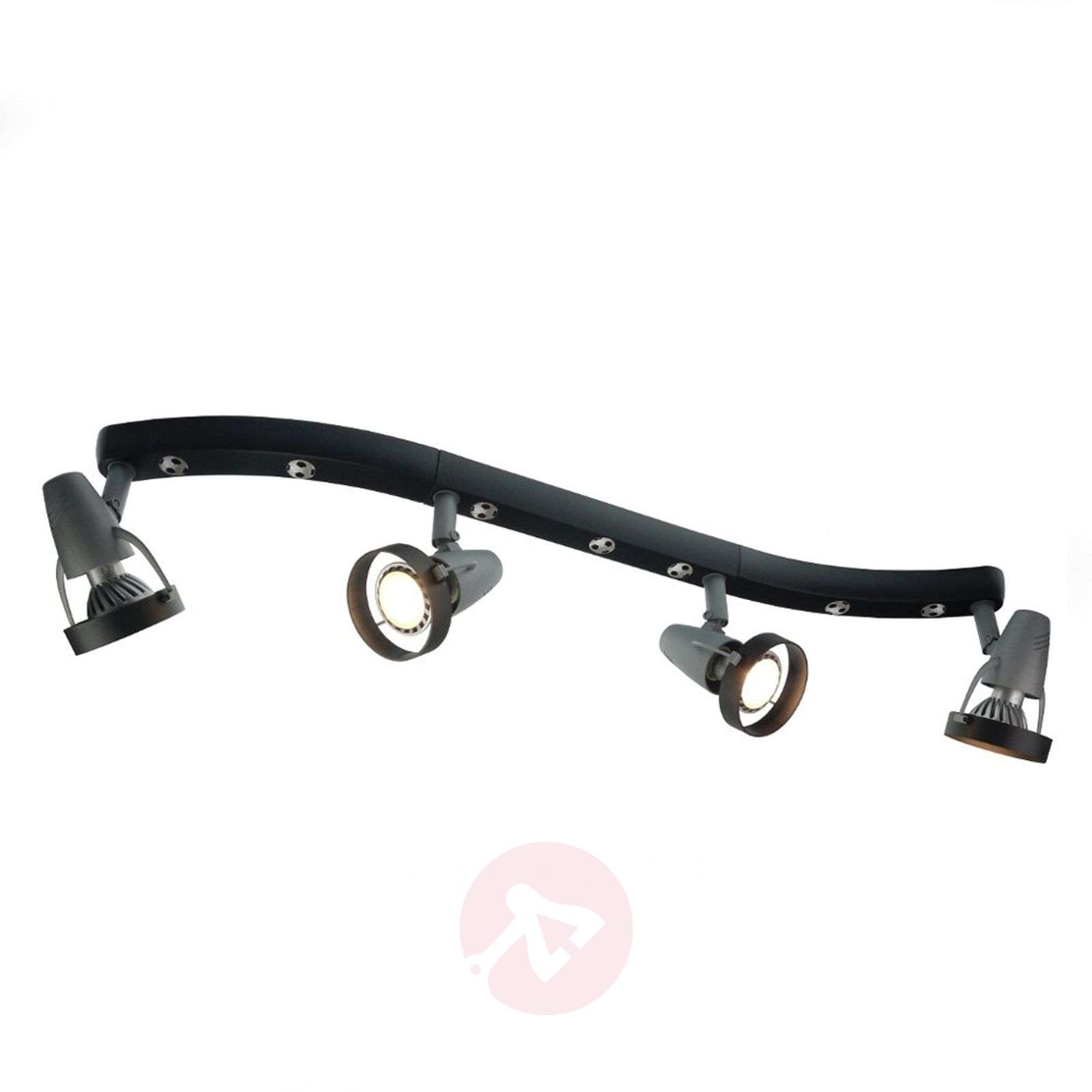 Kreatywna lampa sufitowa z reflektorami Listwa z reflektorami z motywem piłki nożnej sprawi, że serce niejednego miłośnika piłki nożnej zabije mocniej. Listwa ozdobiona jest licznymi piłkami. Cztery reflektory z żarówkami GU10 emitują światło, które można dopasować stosowanie do pomieszczenia i preferencji dzięki przegubom. Listwa stanowi wspaniałe oświetlenie ogólne do pokoju miłośnika piłki nożnej. Klasa efektywności energetycznej: A++
