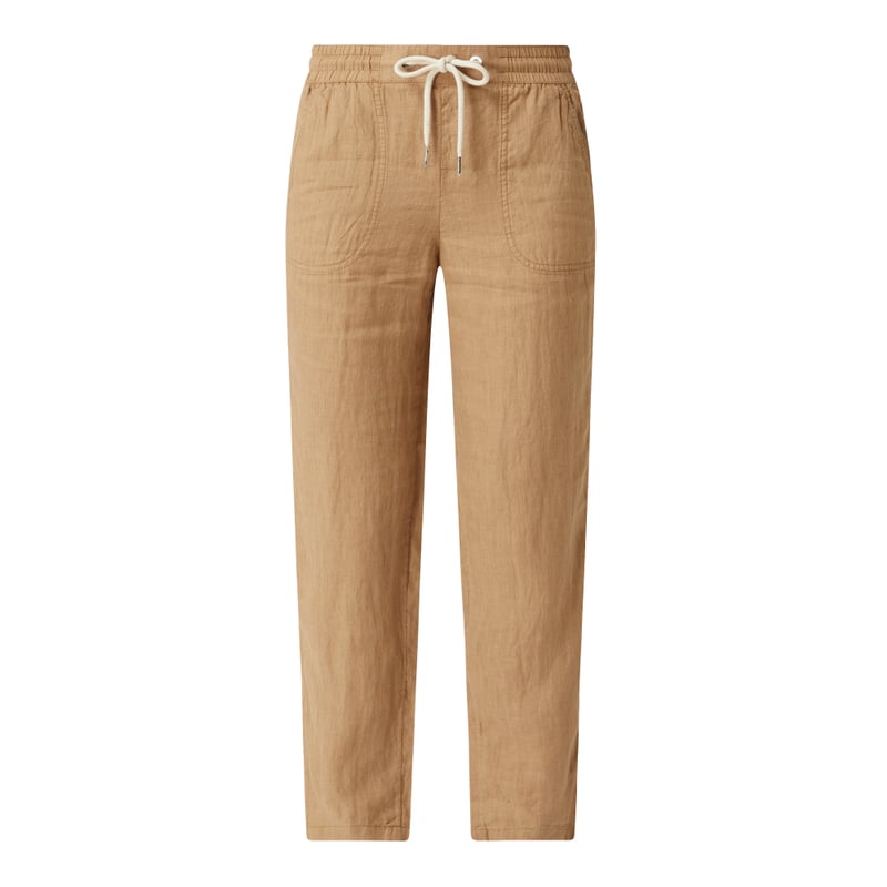 Luźne spodnie damskie s.Oliver RED LABEL, Czysty len, Prosta nogawka, Elastyczny pas z tunelem, Wpuszczane kieszenie w stylu francuskim, Kieszenie z tyłu, Długość wewnętrzna nogawki w rozmiarze 36: 70 cm