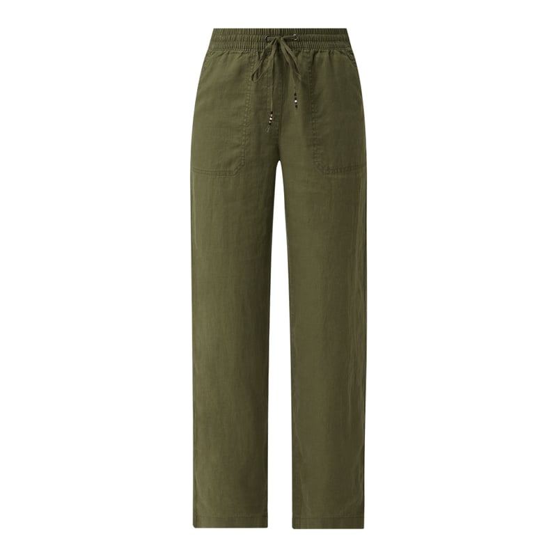 Luźne spodnie damskie Esprit , Czysty len , Prosty krój , Elastyczny pas z tunelem, Wpuszczane kieszenie w stylu francuskim, Ozdobne wypustki z tyłu, Długość wewnętrzna nogawki w rozmiarze 36: 76 cm