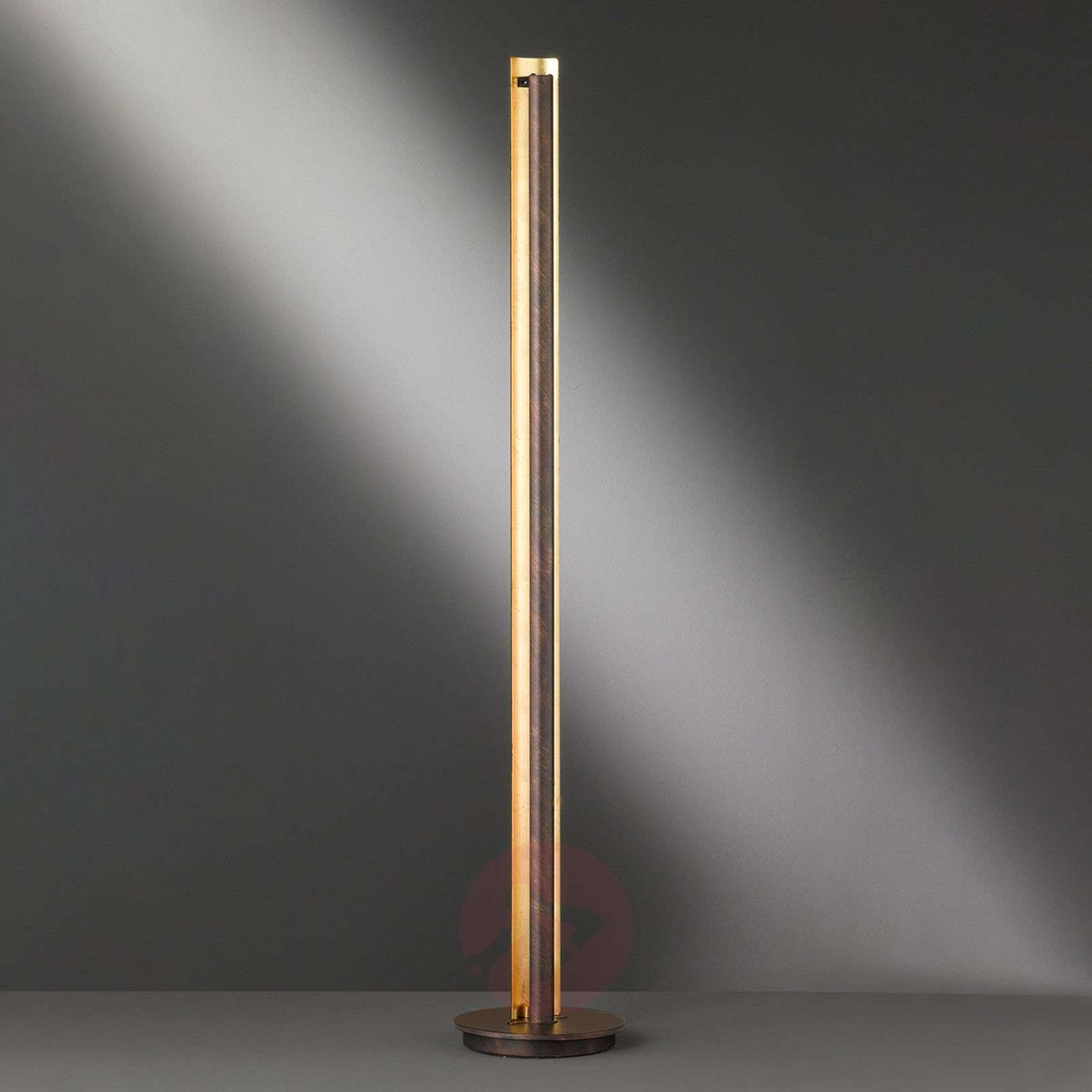 Minimalistyczna forma połączona z luksusową elegancją – lampa stojąca LED Lyon z przełącznikiem nożnym Ta lampa odznacza się stonowanym stylem. Głównym elementem oprawy świetlnej jest pionowy słupek. Szlachetny kolor mosiądzu połączony z eleganckimi złotymi akcentami sprawia, że lampa stojąca LED Lyon prezentuje się wręcz luksusowo. Liczący 150 cm wysokości model z okrągłą podstawą o średnicy zaledwie 25 cm wygląda bardzo zgrabnie. Diody LED o strumieniu świetlnym 2300 lumenów emitują jasne światło o barwie ciepłej bieli. Lampa stojąca LED Lyon jest wyposażona w przełącznik nożny i kabel długości 150 cm, co zapewnia jeszcze wygodniejszą obsługę. Lampa stojąca LED Lyon doskonale wkomponuje się w nowoczesne i stonowane w wystroju wnętrza, również tam, gdzie nie ma zbyt wiele wolnego miejsca. W salonie, sypialni czy w wystawnym hallu – ta lampa stojąca wszędzie dobrze się zaprezentuje. Klasa efektywności energetycznej: A+