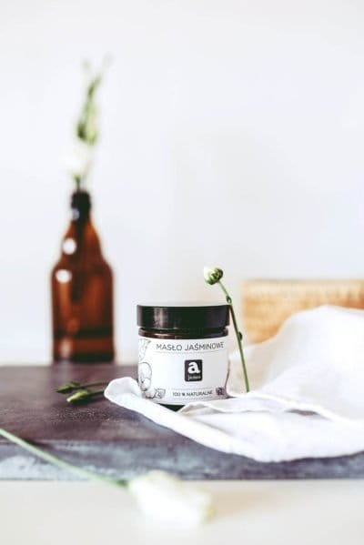 Masło jaśminowe wykazuje właściwości zmiękczające, regenerujące, a także chroniące skórę przez nadmierną utratą wody. Świetnie pielęgnuje przesuszoną i odwodnioną skórę ciała. Masło łączy w sobie regenerujące właściwości oleju ze słodkich migdałów oraz relaksujące właściwości jaśminu, który ma za zadanie zmniejszyć objawy stresu, uspokoić i rozluźnić. Masło ma jedwabistą konsystencję, szybko się wchłania, pozostawia na skórze kwiatowy, delikatny, pachnący film, który utrzymuje się na skórze dosyć długo.