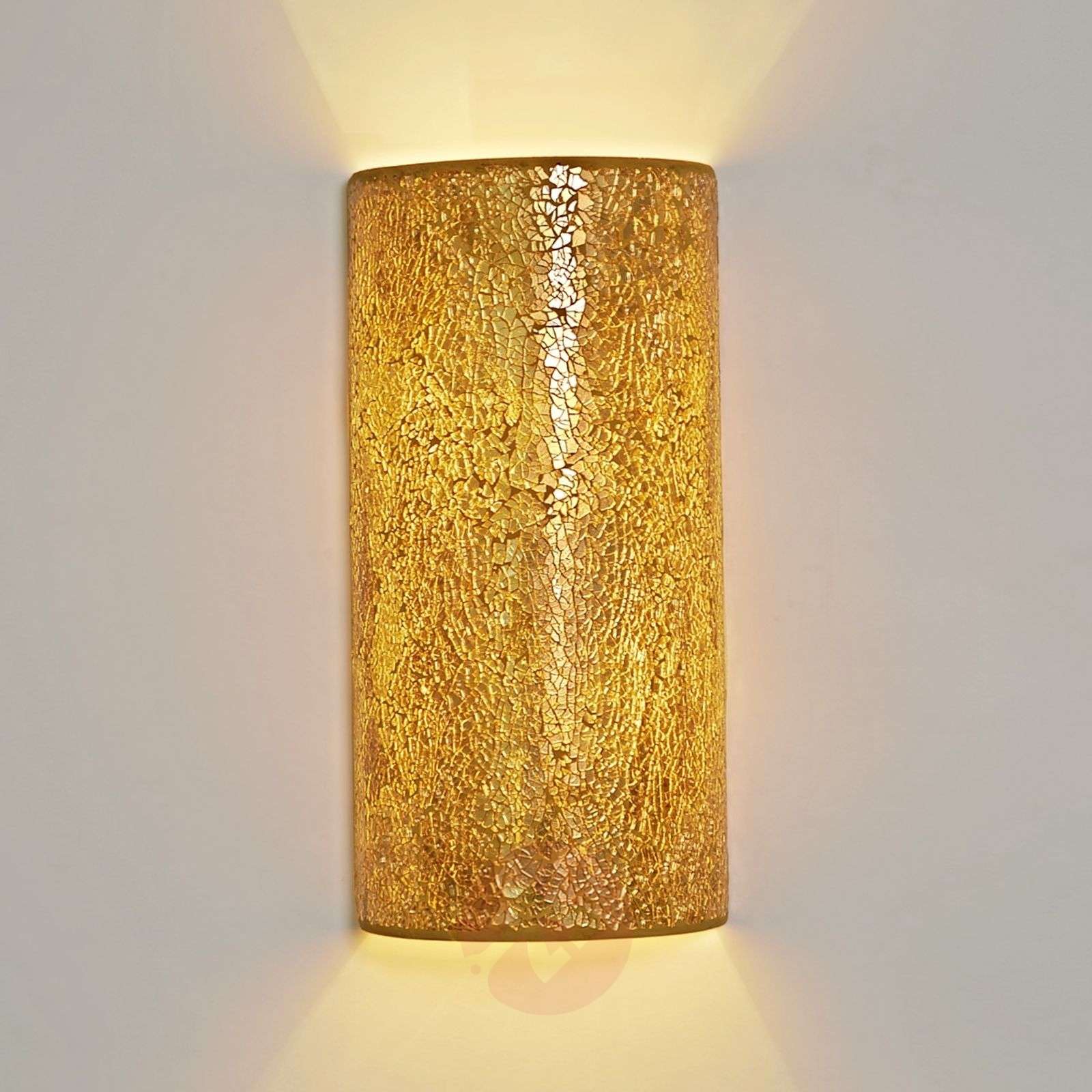 Lampa ścienna Narziso z przepięknym, szklanym kloszem Lampa ścienna Narziso nadaje się doskonale do oświetlenia tych obszarów pomieszczenia, które chcemy szczególnie wyeksponować. Światło lampy jest emitowane ku górze i ku dołowi, na ścianę, a dodatkowo w efektowny sposób wydobywa się z bursztynowego korpusu lampy przez szklaną mozaikę. Narziso skutecznie podkreśli atmosferę luksusu w pomieszczeniach mieszkalnych, będzie także pasowała do wnętrz restauracji czy hoteli wysokiej klasy. Klasa efektywności energetycznej: A++