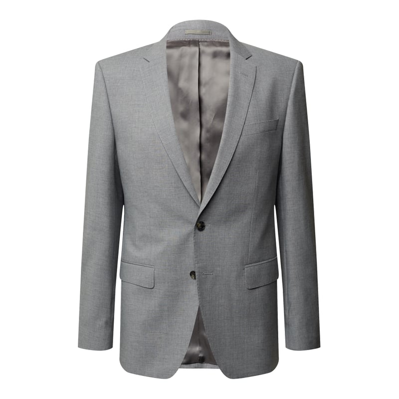 Marynarka męska BOSS, Mieszanka żywej wełny, Krój slim fit, Klapa otwarta, Listwa guzikowa z 2 guzikami, Dwie kieszenie z patką, Brustasza, Nachodzące na siebie guziki, Podszewka z wiskozy, Długość tyłu w rozmiarze 50: 74 cm, Szerokość ramion w rozmiarze 50: 47 cm, Długość rękawa w rozmiarze 50: 66 cm