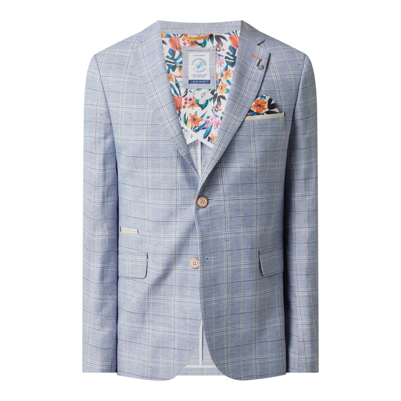 Marynarka męska A Fish Named Fred, Mieszanka materiałów z dodatkiem lnu, wiskozy i bawełny , Prosty krój, Wzór w kratę, Klapa otwarta, Listwa guzikowa z 2 guzikami, Brustasza, biletówka, Kieszenie z patką , Zakończenia rękawów z ozdobnymi guzikami , Długość tyłu w rozmiarze 50: 74 cm, Szerokość ramion w rozmiarze 50: 44 cm, Długość rękawa w rozmiarze 50: 66 cm