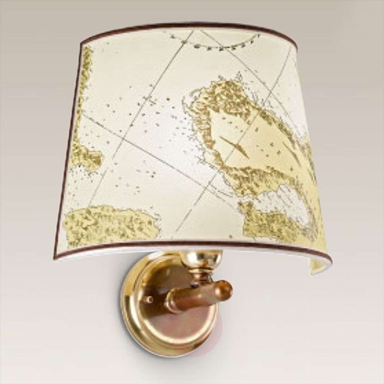 Dekoracyjna lampa ścienna LAGUNA z nadrukowaną mapą Efektowna lampa ścienna LAGUNA jest ładnym oświetleniem a jednocześnie elementem wyposażenia o zdecydowanym, marynarskim charakterze. Błyszczący, wykonany z mosiądzu szkielet lampy jest harmonijnie połączony z abażurem z materiału, na którym nadrukowana jest mapa. LAGUNA zapewni nastrojowe i równomierne oświetlenie różnych pomieszczeń mieszkalnych. Klasa efektywności energetycznej: A++
