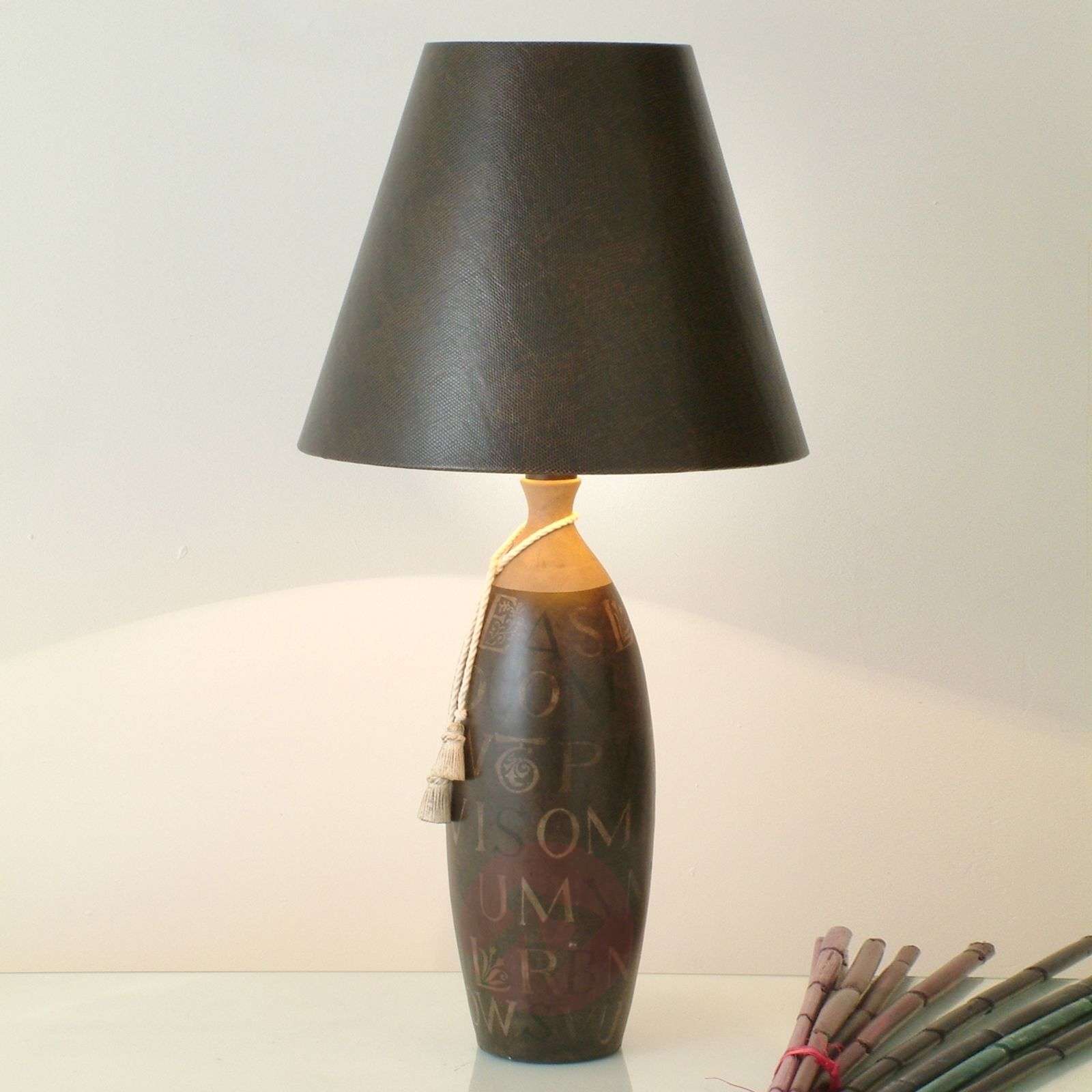 Lampa stołowa Carattere Alta z dekoracyjnymi chwostami Brązowo-piaskowa, ceramiczna stopa lampy stołowej Carattere Alta przypomina z wyglądu butelkę i jest przepięknie zdobiona. Brązowy klosz jest od wewnątrz złoty, a dekoracyjny wisior w naturalnym kolorze uzupełnia imponujący wygląd lampy. Lampa stołowa Carattere Alta tworzy niezwykle dekoracyjny efekt w połączeniu z najróżniejszymi stylami wyposażenia wnętrz. Pasuje również do pomieszczeń gastronomicznych. Klasa efektywności energetycznej: A++