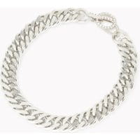 Choker z metalowego łańcuszka o rockowym zacięciu, błyszczącym akcentem jest cyrkonowa aplikacja na zapięciu. Noś z nonszalancją na wykrochmalonych koszulach lub jako wykończenie topów w stylu punk chic.