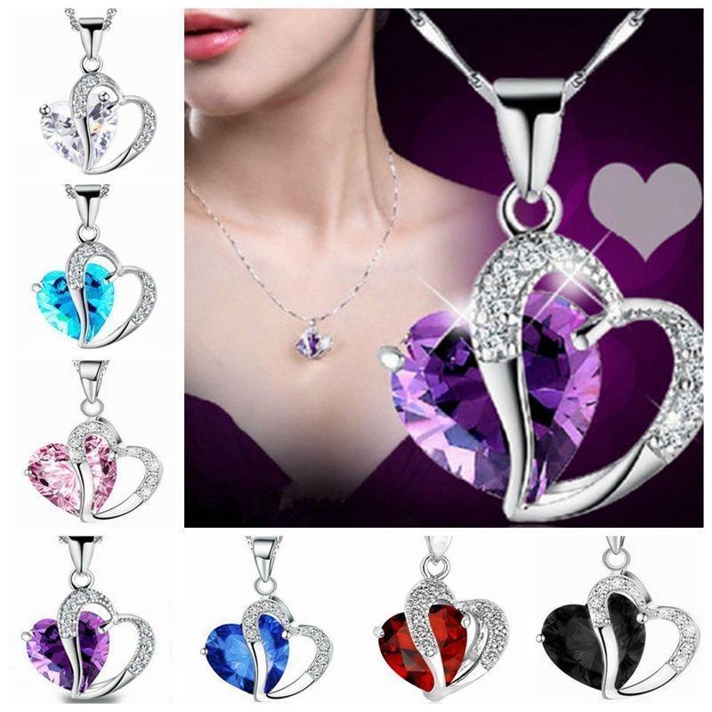 Naszyjnik - serce - Crystal Rhinestone - kolor ametystu