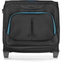 Neseser na kółkach z kolekcjiBiznesNeseser,wykonany zpoliestru1680D,może pełnić funkcję zarówno torby na laptopa, jak i podręcznego bagażu kabinowego. Niewielki, wielofunkcyjny bagażspełni oczekiwania wszystkich tych, którym zależy na komforcie w podróży oraz ochronie przewożonego sprzętu. Pojemna komora główna ze specjalnym wyścieleniem orazelastyczny pasek zapinany na rzep dodatkowo zabezpieczają laptopa przed przemieszczeniem. Dzięki odchylanej komorze w jednej chwili można mieć dostęp do urządzenia, dokumentów czy niezbędnych akcesoriów. Neseser jest wyposażony w zamek szyforwy z system TSA, posiada wysuwaną rączkę oraz miejsce na identyfikator. Dostępny w kolorze czerni z barwnymi wstawkami. Nasza rada:uniwersalny design sprawia, że neseser będzie odpowiedni zarówno dla kobiety, jak i mężczyzny.Wewnątrz: komora zamykanana suwak; dodatkowa rączka oraz aluminiowy stelaż ułatwiający prowadzenie bagażu; posiada miejsce na laptopa o maksymalnych wymiarach 25cm x 36cm, zabezpieczone elastycznym paskiem zapinanym na rzep; z przodu odchylana komora zamykana na suwak, zabezpieczona dwoma paskami spiętymi na plastikowe zapięcia; system TSA, bardzo przydatny w przypadku rewizji bagażu przez służby celne– gwarantuje on bezinwazyjne otwarcie walizki oraz jej ponowne zamknięcie, bez uszkodzenia zamka; trzymiejsca na długopisy, otwarta kieszeń na drobiazgi zabezpieczona paskiem zapinanym na rzep, miejsce na telefon komórkowy; spełnia wymagania bagażu kabinowego. Podane wymiary obejmują również elementy wystające, takie jak rączki czy kółka.