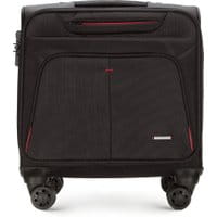 Neseser na kółkach z kolekcjiBiznesNeseserwykonany z wytrzymałegopoliestru1680D może pełnić funkcję zarówno torby na laptopa, jak i podręcznego bagażu kabinowego. Niewielki, wielofunkcyjny bagażspełni oczekiwania wszystkich tych, którym zależy na komforcie w podróży oraz ochronie przewożonego sprzętu. Pojemna komora główna ze specjalnym wyścieleniem chroni urządzenie przed zarysowaniami, a elastyczny pasek zapinany na rzep dodatkowo zabezpiecza laptopa przed przemieszczeniem. Dzięki odchylanej komorze w jednej chwili można mieć dostęp do urządzenia, dokumentów czy niezbędnych akcesoriów.Model posiadacztery podwójne kółkaułatwiające manewrowanie. Neseser jest wyposażony w zamek szyforwy z system TSA, posiada wysuwaną rączkę oraz miejsce na identyfikator. Wszystko to dla wygody i bezpieczeństwa w trakcie podróży, nie tylko biznesowej. Dostępny w kolorze czerni z barwnymi wstawkami. Nasza rada:uniwersalny design sprawia, że neseser będzie odpowiedni zarówno dla kobiety, jak i mężczyzny.Wewnątrz: komora zamykanana suwak; dodatkowa rączka oraz aluminiowy stelaż ułatwiający prowadzenie bagażu; posiada miejsce na laptopa o maksymalnych wymiarach 25cm x 36cm, zabezpieczone elastycznym paskiem zapinanym na rzep; odchylana komora zabezpieczona dwoma paskami spiętymi na plastikowe zapięcia; system TSA, bardzo przydatny w przypadku rewizji bagażu przez służby celne– gwarantuje on bezinwazyjne otwarcie walizki oraz jej ponowne zamknięcie, bez uszkodzenia zamka; trzymiejsca na długopisy, otwarta kieszeń na drobiazgi zabezpieczona paskiem zapinanym na rzep, miejsce na telefon komórkowy; spełnia wymagania bagażu kabinowego. Podane wymiary obejmują również elementy wystające, takie jak rączki czy kółka.