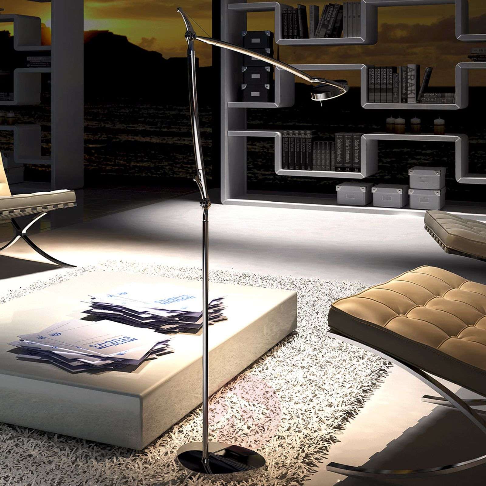 Lampa stojąca LED PERCEVAL – bardzo wygodna regulacja dzięki obracanym i odchylanym głowicom Lampa stojąca PERCEVAL przyda się na przykład w strefie relaksu w salonie. Daje ciepłobiałe światło, tworząc we wnętrzu nastrojową atmosferę. Obracane i odchylane głowice umożliwiają dostosowanie światła do indywidualnych potrzeb. PERCEVAL przekonuje błyszczącą, chromowaną powierzchnią i stanowi nieodzowny dodatek do każdego nowoczesnego wnętrza. Wyposażone we włącznik. Od 1960 roku marka Milan Iluminaci tworzy produkty odznaczające się niezwykłym designem, wysoką jakością stosowanych komponentów oraz odpowiadające wysokim standardom jakości. Jej lampy obecne są w najlepszych showroomach w największych miastach na świecie, m. in. w Paryżu, Londynie, Nowym Jorku, Madrycie, Barcelonie, Berlinie i Frankfurcie. Klasa efektywności energetycznej: A+