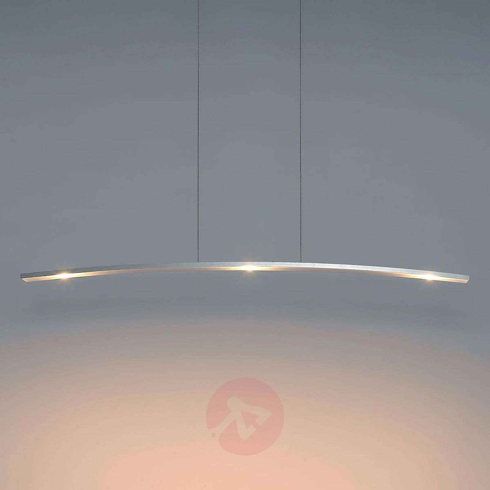 Lampa wisząca LED Change o podłużnym kształcie, ze szlifowaną aluminiową powierzchnią Kiedy nastrojowo chcemy oświetlić duży stół w jadalni w mieszkaniu prywatnym albo też zapewnić odpowiednie oświetlenie przy biurku w biurze komercyjnym, nasze wymagania z łatwością spełni doskonałej jakości lampa wisząca LED Change. Jest ona produkowana w Niemczech. Zamontowano w niej trzy wydajne, a jednocześnie energooszczędne spoty LED. To one, jako elementy tej lampy wiszącej, zapewniają wystarczającą jasność. Zarówno klosz lampy, jak i rozeta sufitowa, wykonane zostały ze szlifowanego aluminium, dzięki czemu lampa wygląda niezwykle nowocześnie i ponadczasowo. Jasność diod LED można ustalić w zależności od wymagań za pomocą ściemniacza dotykowego, zainstalowanego w górnej części belki. Podczas procesu ściemniania, temperatura światła zmienia się w zakresie od 2 000 K do 2 700 K, tworząc jeszcze bardziej przytulną atmosferę. Klasa efektywności energetycznej: A+