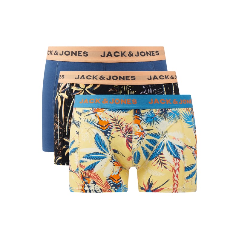 Obcisłe bokserki męskie JACK & JONES, Mieszanka bawełny i elastanu , Dopasowany fason, Zestaw 3 szt., Elastyczny pas z logo , Szwy działowe , Better Cotton Initiative