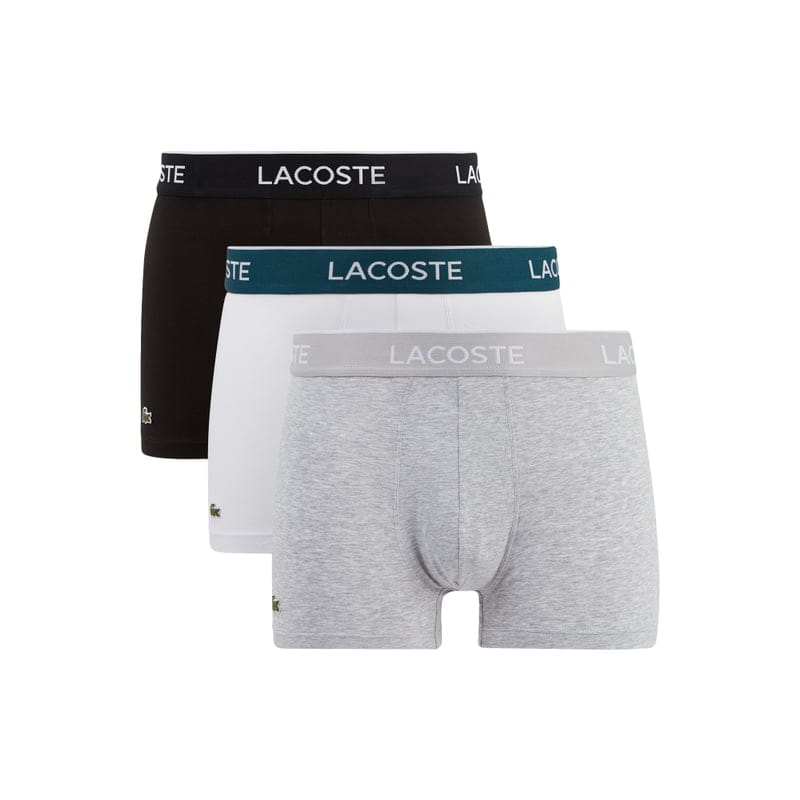 Obcisłe bokserki męskie LACOSTE, Mieszanka bawełny i elastanu , Szorty z wąską nogawką, Zestaw 3 szt., Elastyczny pas z logo
