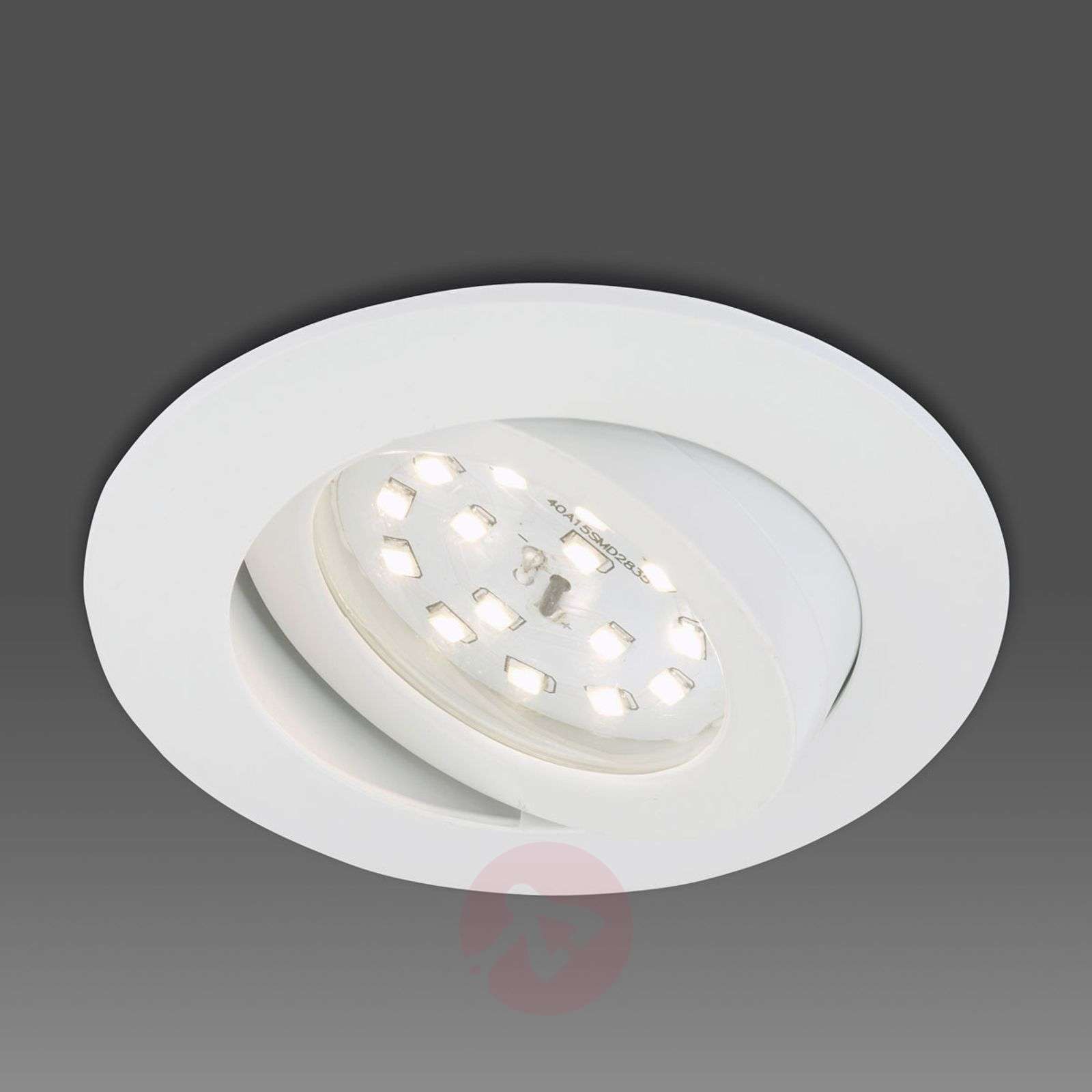 Obrotowy reflektor wpuszczany LED Erik umożliwia ukierunkowane oświetlenie sufitowe Ten mały reflektor wpuszczany przekonuje najnowocześniejszą techniką oświetleniową LED i może być uniwersalnie stosowany dzięki ponadczasowej kolorystyce. Pierścień zewnętrzny jest wykonany z wytrzymałego tworzywa sztucznego. Dzięki temu lampa jest absolutnie nierdzewna. We wnętrzu zintegrowano moduł LED o mocy 5 W. Zapewnia on światło o barwie ciepłej bieli przy strumieniu świetlnym 400 lumenów. Ten reflektor wpuszczany może być wykorzystany do stworzenia energooszczędnego oświetlenia ogólnego. W dziale akcesoriów (1510297) dostępny jest biały dyfuzor, dzięki któremu reflektor wpuszczany emituje bardziej przytulne światło. Dostępne jest gniazdo przyłączeniowe dla napięcia 230 V, sterownik jest zintegrowany. Lampa może być podłączona bezpośrednio. Zalety w skrócie: - nierdzewna - małe wytwarzanie ciepła - mała głębokość zabudowy - łatwe i bezpieczne podłączanie za pomocą skrzynki zacisków (brak konieczności stosowania transformatora) - możliwość dowolnej rozbudowy Klasa efektywności energetycznej: A+