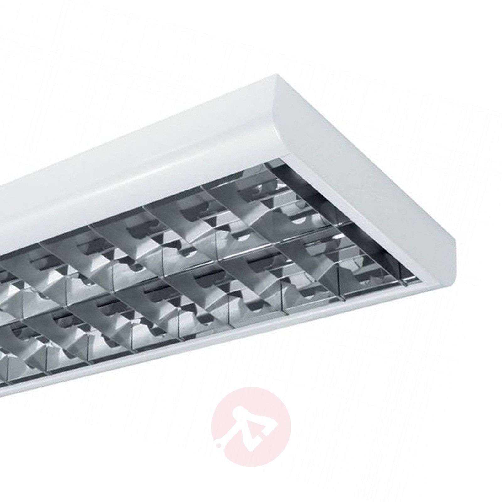 Bardzo płaska oprawa rastrowa natynkowa T8 2 x 58W z rastrem do oświetlenia miejsc pracy przy monitorze. Ta sufitowa oprawa rastrowa natynkowa posiada solidną obudowę z blachy. Jest ona polakierowana na biało, posiada płaski element czołowy oraz ukośnie boki o niewielkiej wysokości od zabudowy, wynoszącej jedynie 6,5 cm. Z zintegrowanym, wysokiej jakości elektronicznym statecznikiem marki Osram o pięcioletniej gwarancji. Klasa efektywności energetycznej: A++