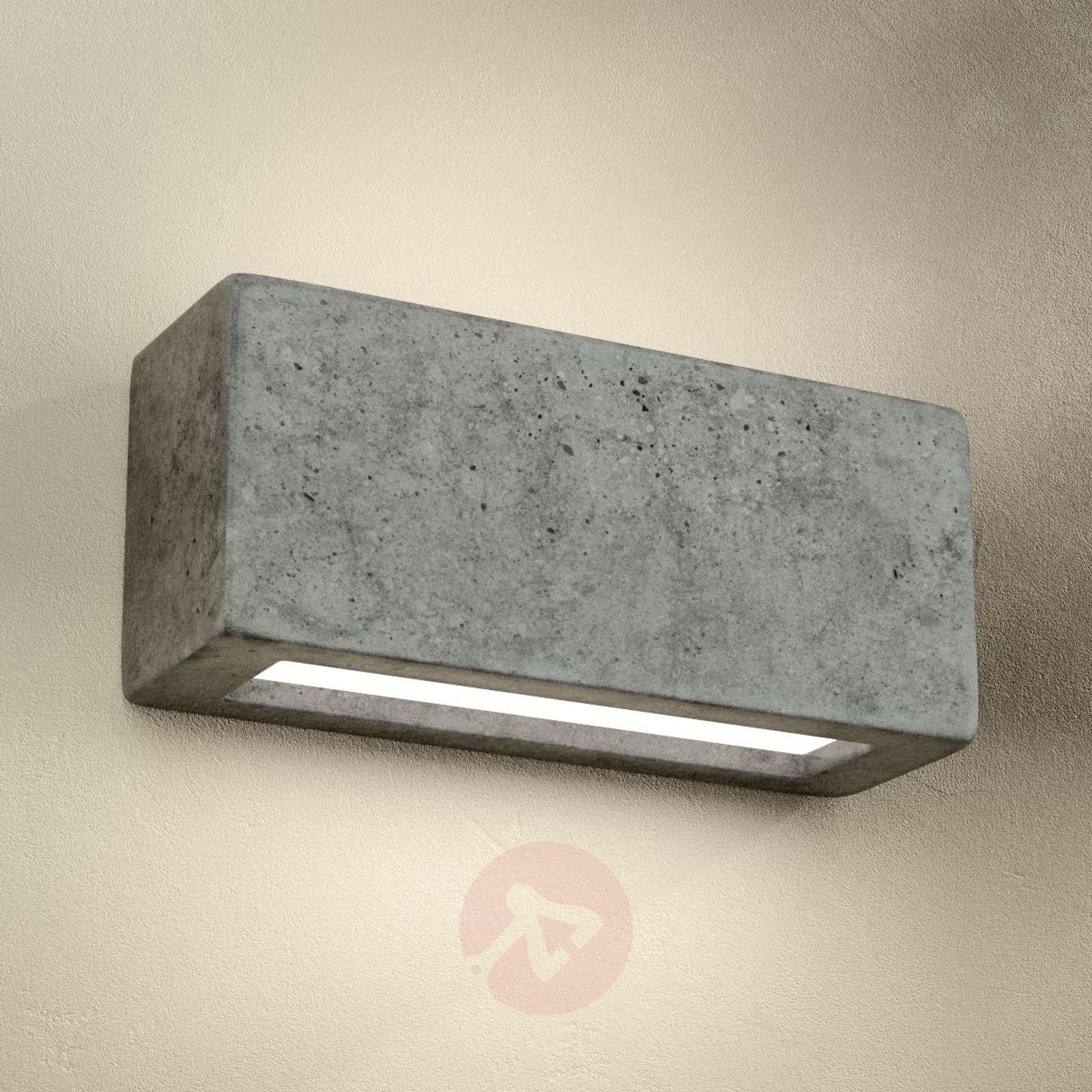Prostokątna lampa ścienna Proof z betonu Lampa ścienna Proof wykonana jest z modnego materiału, jakim jest beton – odlano z niego prostokątny klosz, osłonięty szklaną pokrywą. Dawniej beton wykorzystywany był wyłącznie jako materiał budowlany – dziś jest to niezwykle modny materiał używany do produkcji mebli takich jak przykładowo blaty stołów, artykuły dekoracyjne oraz klosze oprawy. Klasa efektywności energetycznej: A++