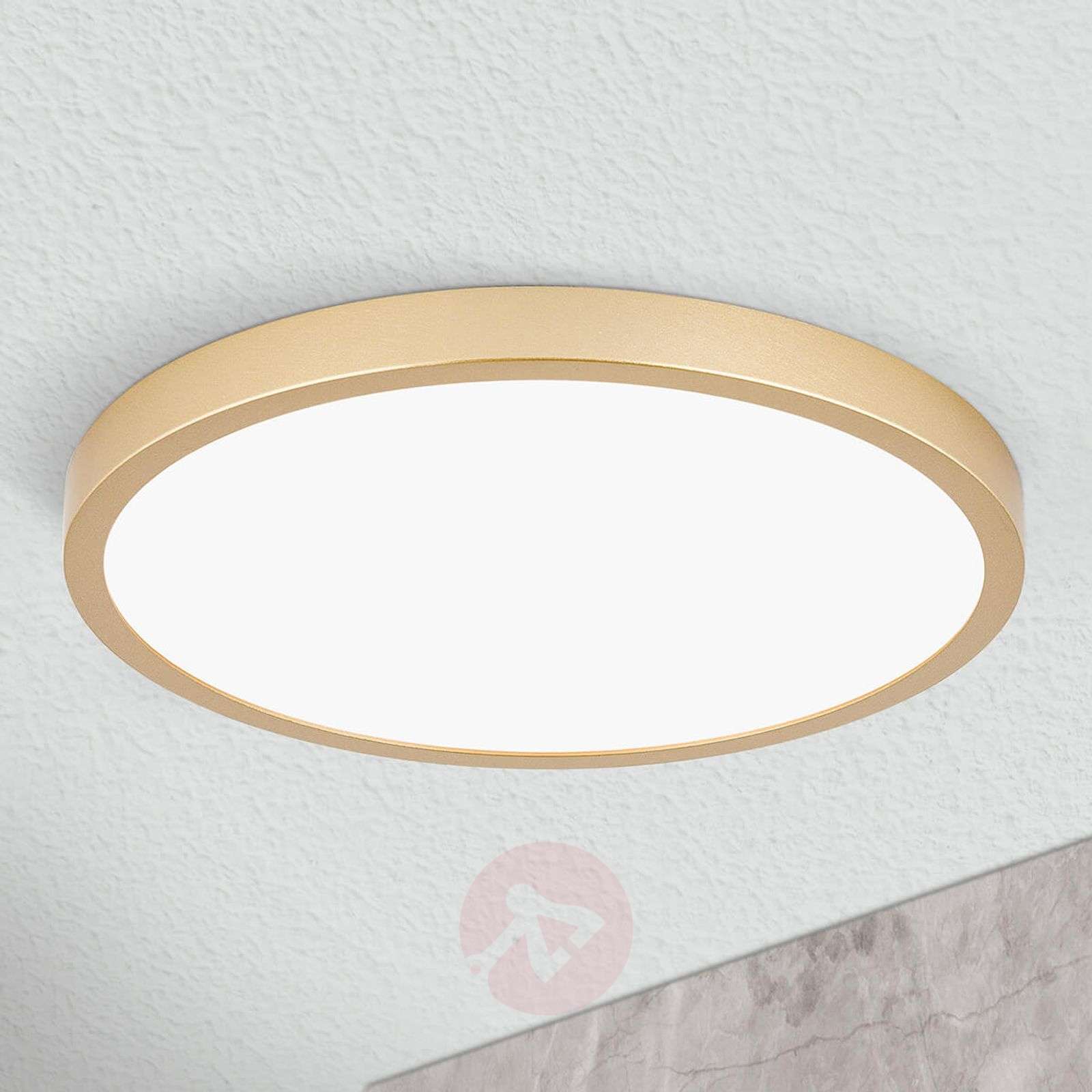 Vika – złota, lakierowana matowa lampa sufitowa LED Lampa sufitowa LED Vika przekonuje przede wszystkim bardzo płaską konstrukcją – ma tylko 2,4 cm wysokości. Ponadto jest to bardzo elastyczna lampa, ponieważ może być stosowana w wielu różnych pomieszczeniach i w połączeniu z wieloma stylami. Okrągła obudowa wykonana jest z wytrzymałego aluminium z matowym złotym wykończeniem. Biała satynowa płyta dyfuzora rozprasza światło na dużej powierzchni, dzięki czemu Vika idealnie nadaje się do oświetlenia ogólnego salonów, takich jak korytarze czy pokoje hobbystyczne. Oprawa nadaje się zarówno do montażu sufitowego, jak i ściennego, co jeszcze bardziej podkreśla jej elastyczność. Elementy mocujące i śruby nie są widoczne z zewnątrz! Klasa efektywności energetycznej: A+