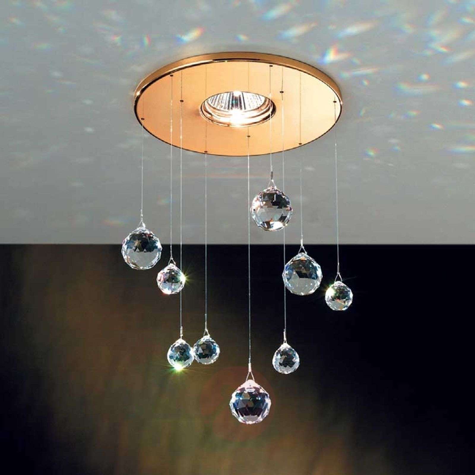 Iskrząca się oprawa wpuszczana FENG SHUI, prawdziwy element przyciągający wzrok Fascynująca oprawa wpuszczana FENG SHUI wnosząca do domu blask iskrzącego się światła. Na 24 karatowym, pozłacanym, metalowym mocowaniu sufitowym znajdują się kuliste kryształy górskie Swarovskiego, nawleczone na cienkie, ledwo widoczne nitki, zawieszone na różnych wysokościach. W połączeniu z 50 watowym źródłem światła powstają zapierające dech w piersiach efekty świetlne, czynią cały pokój zaczarowanym i zapraszają gości do oddania się marzeniom. Eleganckie źródło światła, które jest czymś więcej niż tylko oprawą. Od 1948 roku austriacki producent wytwarza ekskluzywne lampy. Charakterystyczne dla tych lamp są doskonała jakość, pierwszorzędne wzornictwo, austriackie rzemiosło i długa żywotność. Ponadto producent obiecuje, że w razie potrzeby wszelkie wymagane części zamienne będą dostępne przez wiele lat. Klasa efektywności energetycznej: A++
