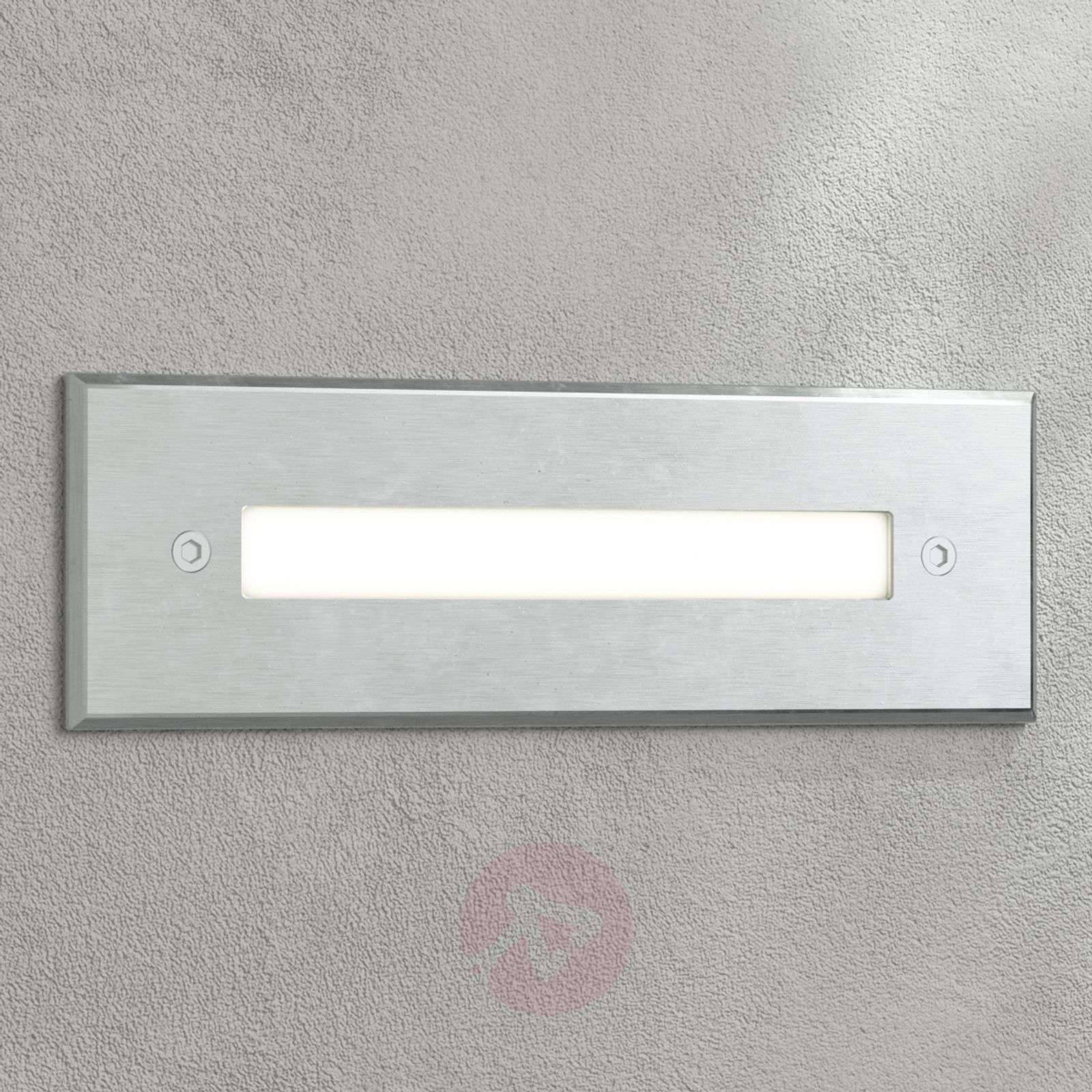 Podłużna oprawa wpuszczana ścienna LED Doga, stal szlachetna, IP65 Doga to oprawa wpuszczana do montażu w fasadach i murach, gdzie może być postrzegana jako cegła. Widoczna rama wykonana jest ze stali szlachetnej, a pośrodku znajduje się mały szklany klosz osłaniający żarówki LED. Są one jasne i wydajne, dlatego też nie trzeba się martwic o zużycie energii elektrycznej. Dzięki swoim właściwościom oprawa ścienna LED Doga zachowuje się jak delikatne światło ułatwiające orientację na zewnątrz budynków. Tworzy bardzo miękkie światło, a dzięki klasie ochrony IP65 jest doskonale zabezpieczona przed przenikaniem brudu i wilgoci. Klasa efektywności energetycznej: A+