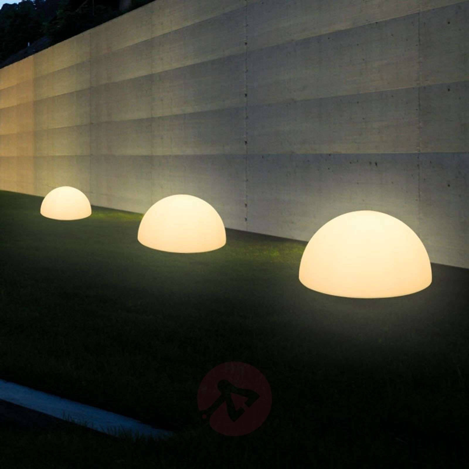 OHPS - podświetlana półkula do montażu na zewnątrz Ta bardzo ozdobna półkula przekonuje swoim wyjątkowym wzornictwem i przytulnym, ciepłym światłem. Świecący półokrągły obiekt z białego tworzywa sztucznego przyjemnym oświetleniem tworzy przytulną atmosferę. Wysokość lampy OHPS wynosi 25 cm, a średnica 50 cm. Można ją zastosować zarówno w prywatnym ogrodzie do orientacji w ciemności, ale też bardzo ładnie prezentuje się ona w spa lub innych obiektach użyteczności publicznej. Klasa efektywności energetycznej: A++