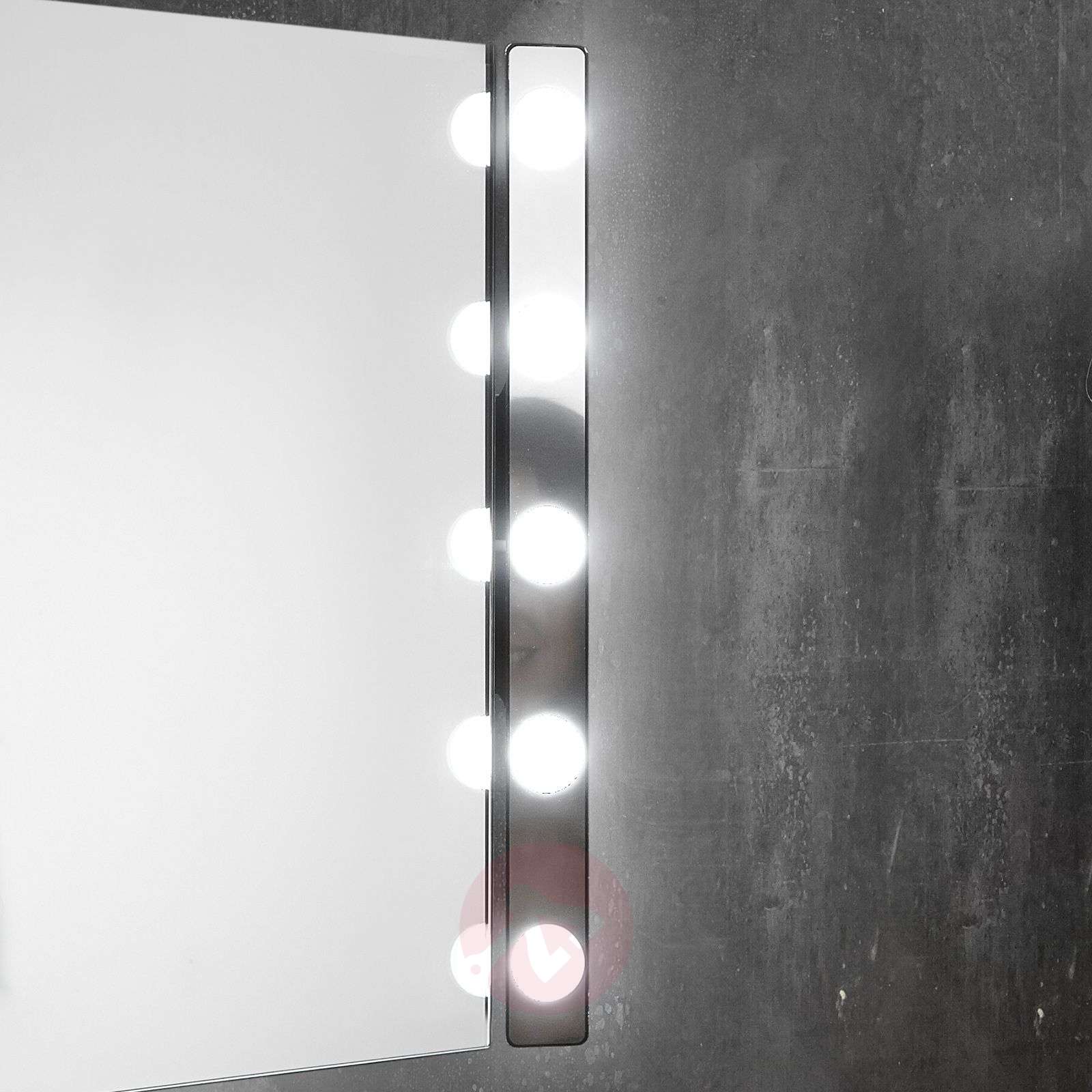 Elastyczny kinkiet łazienkowy LED nad lustro Hollywood Czy to na lustrze łazienkowym, szafie garderoby czy bezpośrednio na ścianie - Hollywood jest eleganckim źródłem światła do wielu zastosowań. Ponadto Hollywood może być montowany zarówno w pionie, jak i w poziomie. Pięć okrągłych poliwęglanowych dyfuzorów z diodami LED świecącymi barwą ciepłej bieli umieszczono w długiej listwie z błyszczącym chromowym wykończeniem. W zestawie znajduje się puszka do podłączenia w ścianie z przyłączem do lampy o długości 35 cm. Klasa efektywności energetycznej: A++
