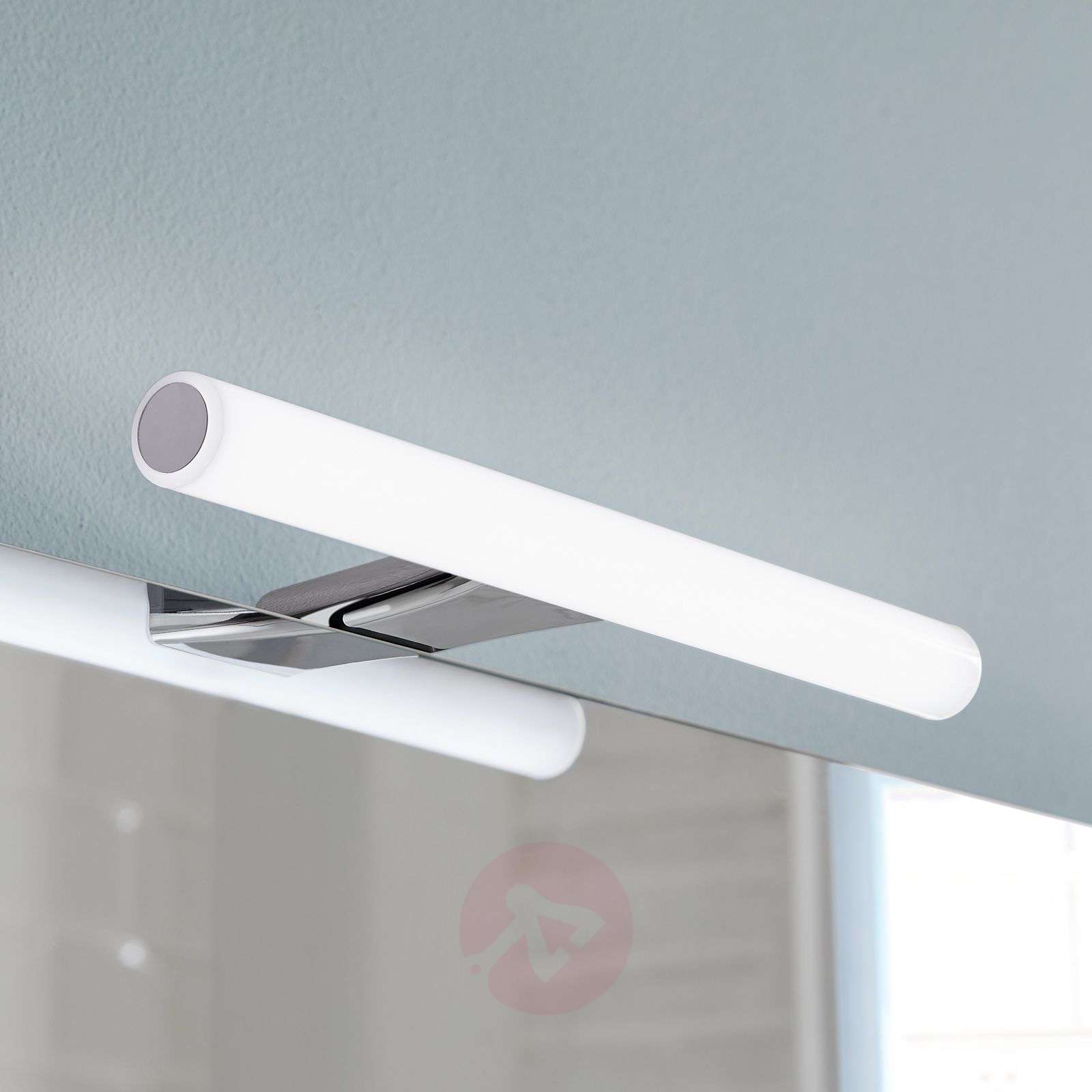 Okrągłe oświetlenie lustra LED Irene 2 Dzięki matowo-białemu dyfuzorowi z poliwęglanu w kształcie cylindra wyposażonego w diody LED świecącego w kolorze światła dziennego, Irene 2 oferuje bezpośrednie i pośrednie oświetlenie pod kątem 210°. Uchwyt z błyszczącego chromu zapewnia elegancję. Irene 2 należy przymocować nie tylko do luster, ale również do szafek. Do montażu dołączona jest puszka przyłączeniowa z kablem połączeniowym o długości 35 cm. Klasa efektywności energetycznej: A++