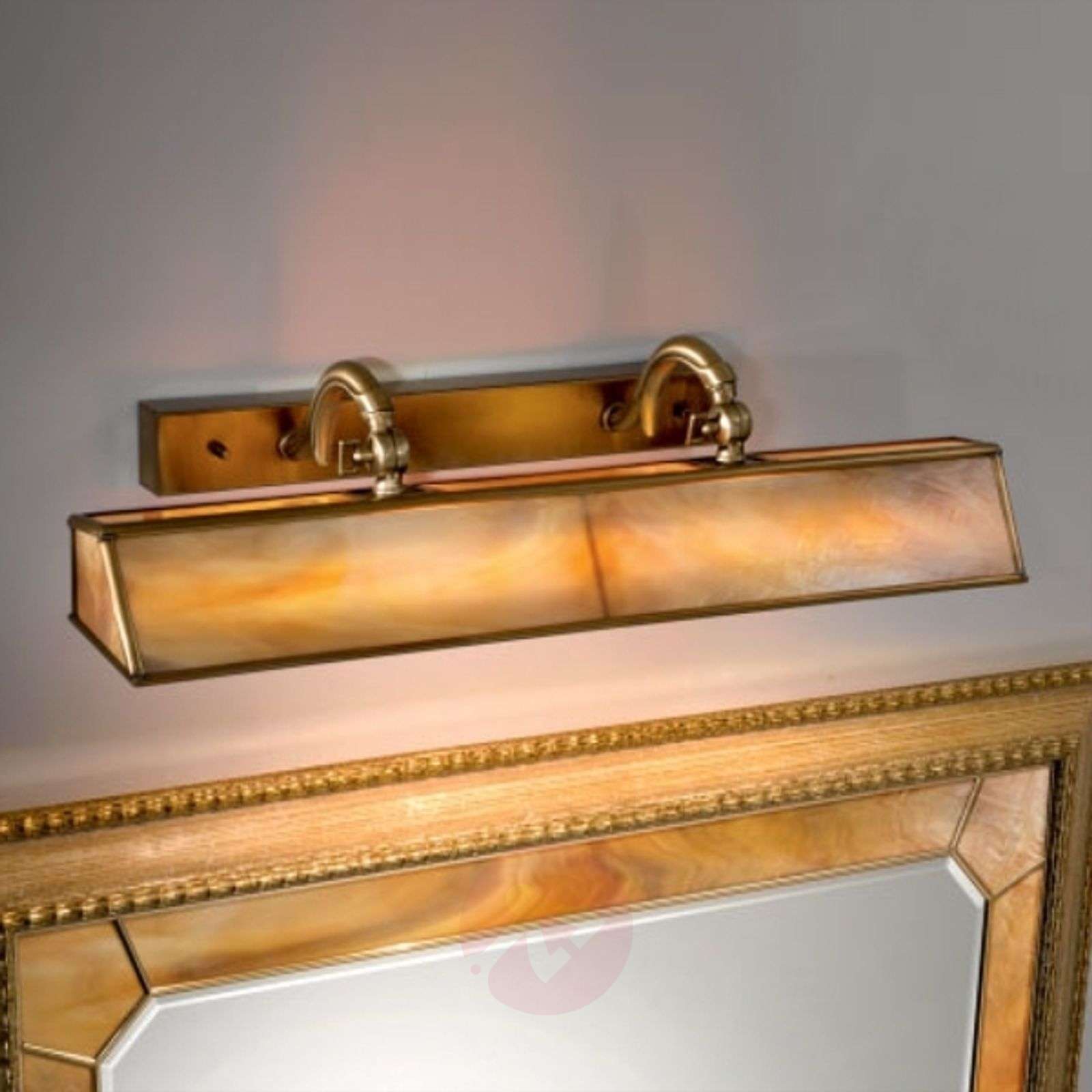 Stylowe oświetlenie obrazów GALLERIA w dwóch kolorach do wyboru Klasyczne oświetlenie obrazów GALLERIA jest wyposażone w mosiężną konstrukcję o ładnym kształcie. Dwa przeguby umieszczone na szkielecie pozwalają na elastyczną regulację klosza. Dzięki temu światło zostanie skierowane dokładnie na wybrany obraz, co pozwala stosować lampę również w roli światła akcentowego. Klasyczna lampa ścienna GALLERIA jest dostępna z mosiężnym szkieletem ze złotą powierzchnią i z zielonym kloszem lub z mosiężną powierzchnią z bursztynowym kloszem. Klasa efektywności energetycznej: A++