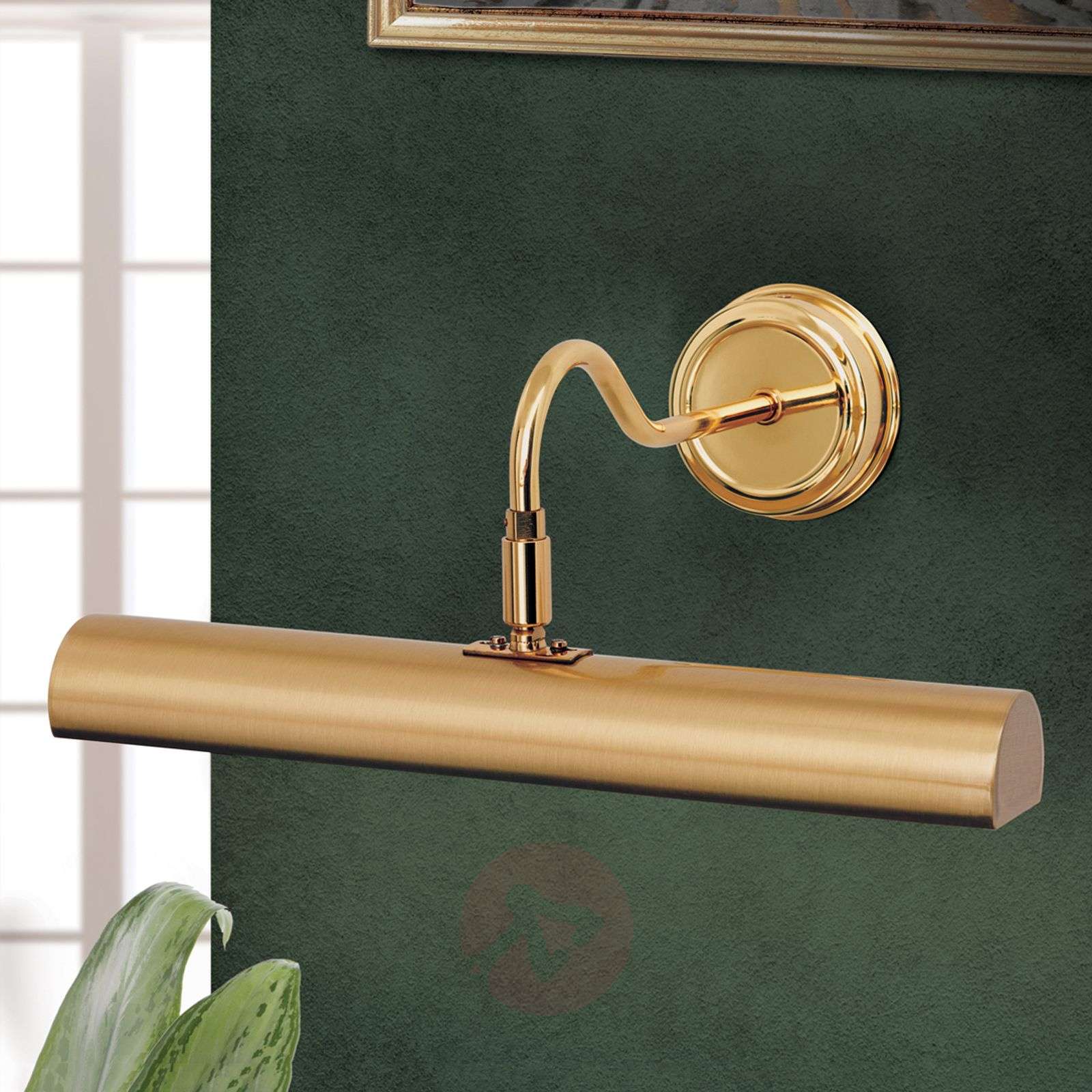 Oświetlenie obrazów LARIGA o długości 35 cm z ręcznie polerowaną, matową powierzchnią w kolorze mosiądzu Odznaczające się subtelną formą oświetlenie obrazów LARIGA wygląda niezwykle pięknie. Posiada reflektor z białym wnętrzem które optymalnie odbija światło, oraz ruchomą głowicę. Dzięki temu zapewnia indywidualne oświetlenie przeróżnych dzieł sztuki. Subtelny, elegancki wygląd lampy pozwala na umieszczenie jej w wielu pomieszczeniach mieszkalnych i komercyjnych. Klasa efektywności energetycznej: A++